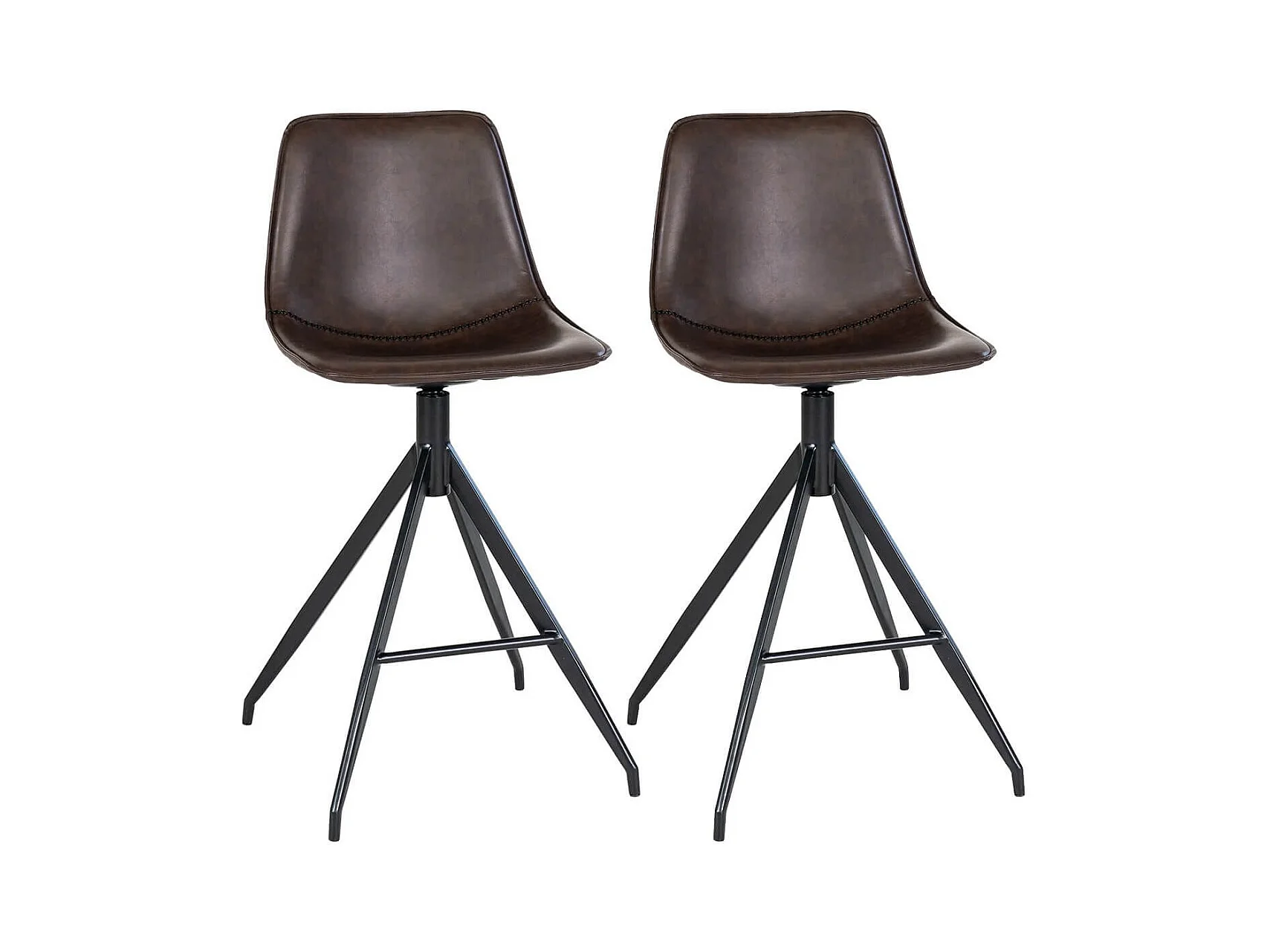COUNTER - Lot de 2 Chaises Hautes Simili Cuir Marron Pied Pivotant Métal Noir