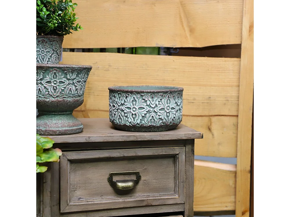 Cache-pot rond en ciment vieilli bleuté et cuivré - Ø.17,5 x Ht.15,5 cmØ.17,5 x Ht.15,5 cm