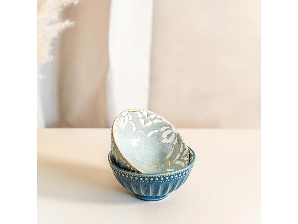 Set de 2 plats rectangulaire en céramique au grés du temps bleu (22x10cm) - GALET