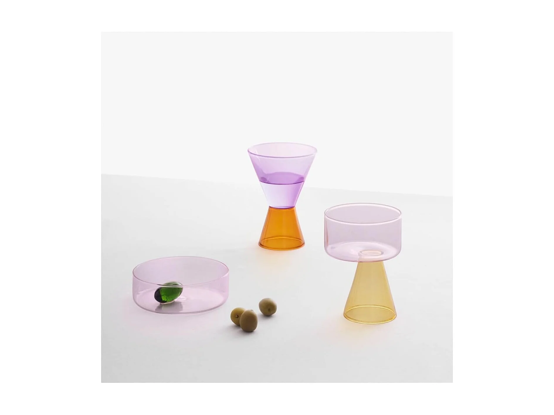 Coupelle avec olive en verre borosilicate mauve/vert D12 cm, Travasi