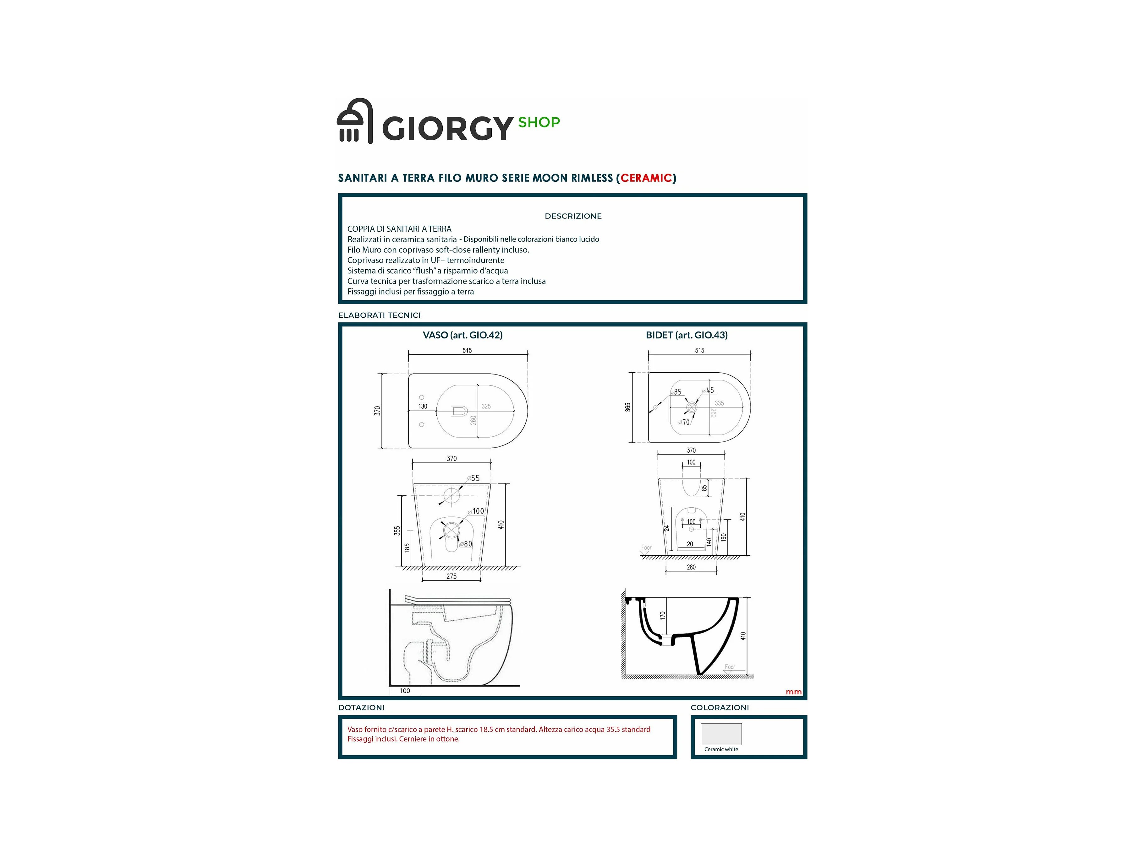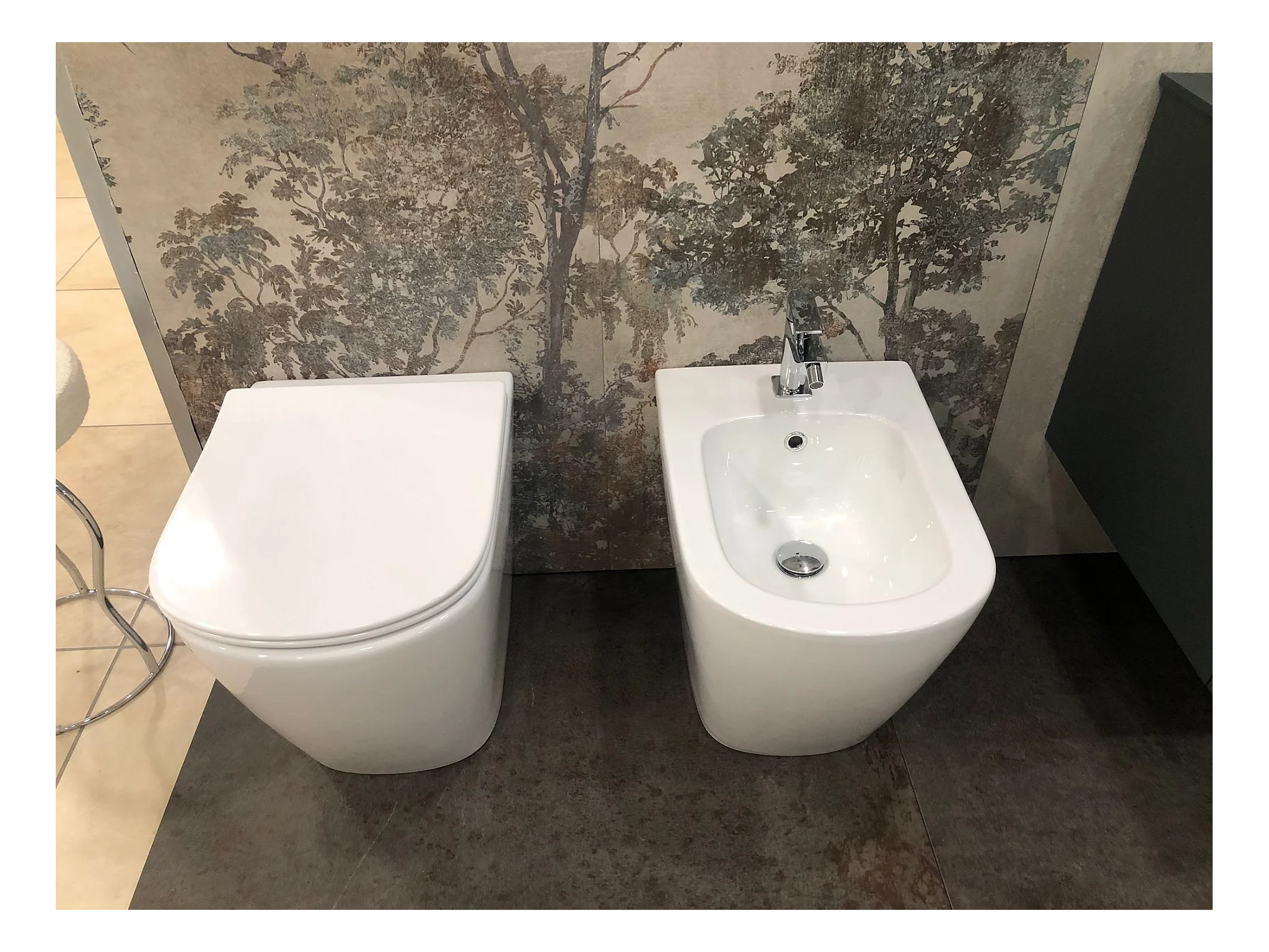 Couple de Sanitaire à poser et au ras du mur modéle Moon Rimless sans bride (GIO.42 + 43) avec abattant soft-close inclus