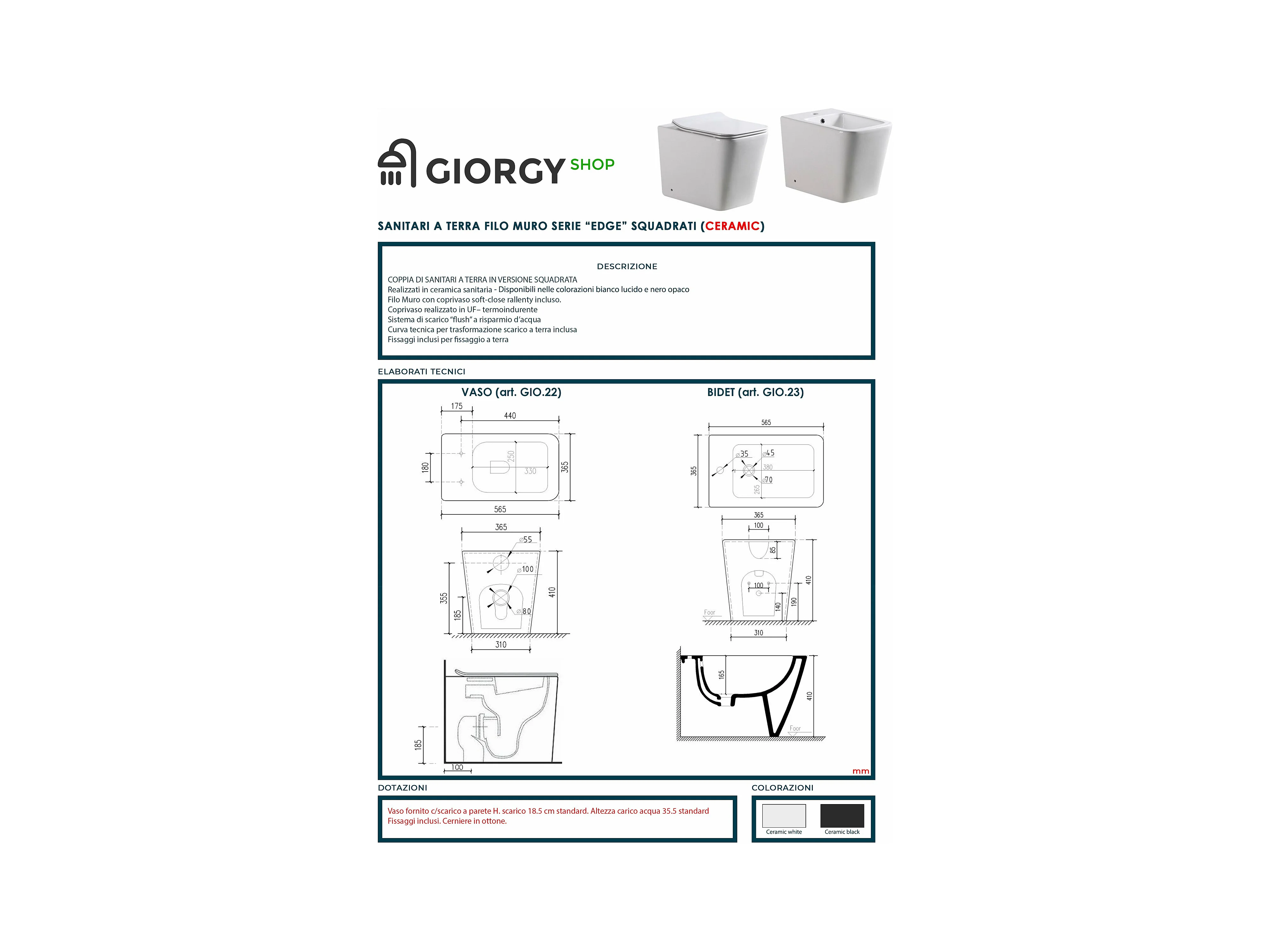 Couple de sanitaires au ras du mur et à poser, ligne carré et de couleur noire mat avec abattant soft-close inclus