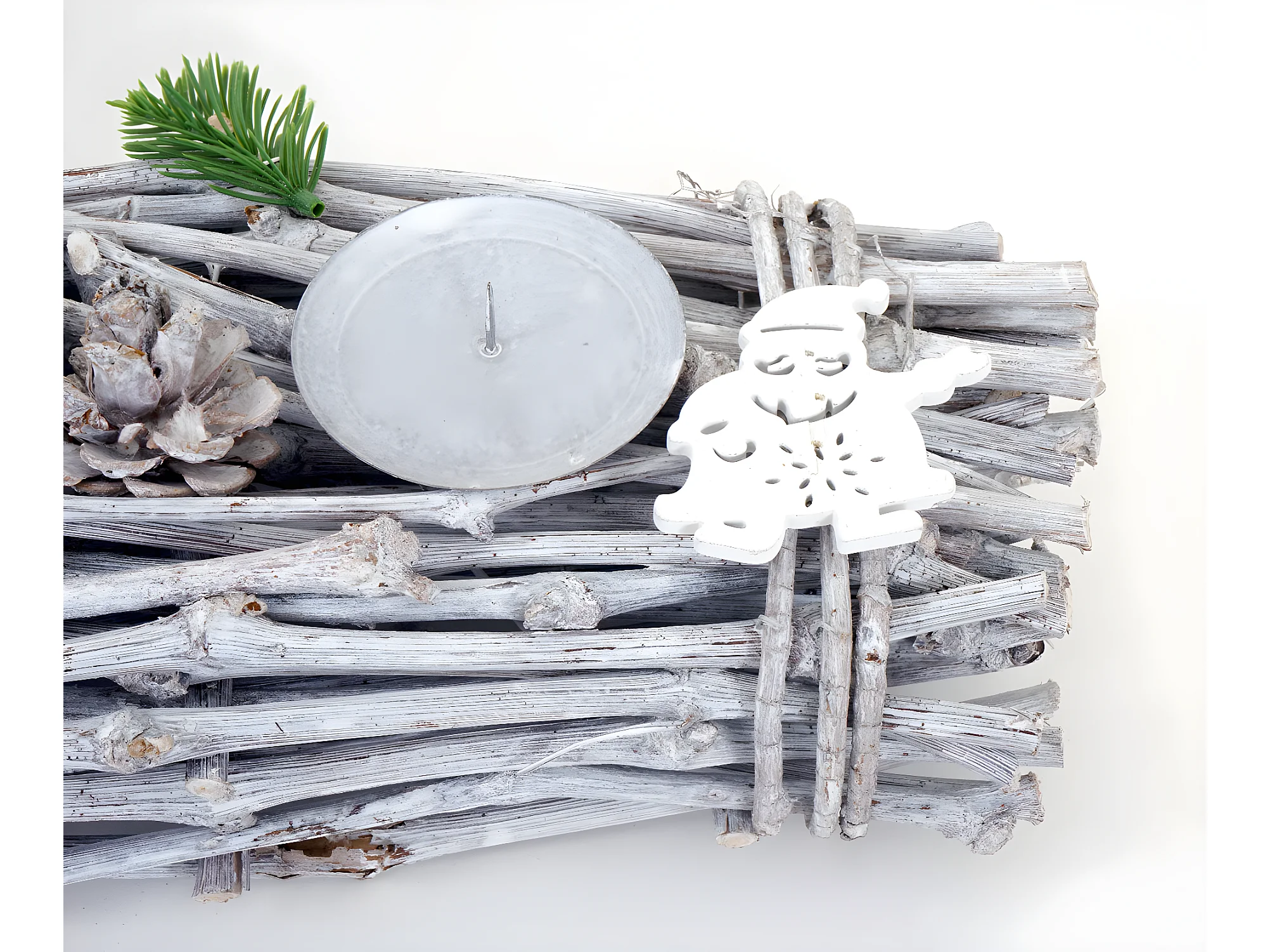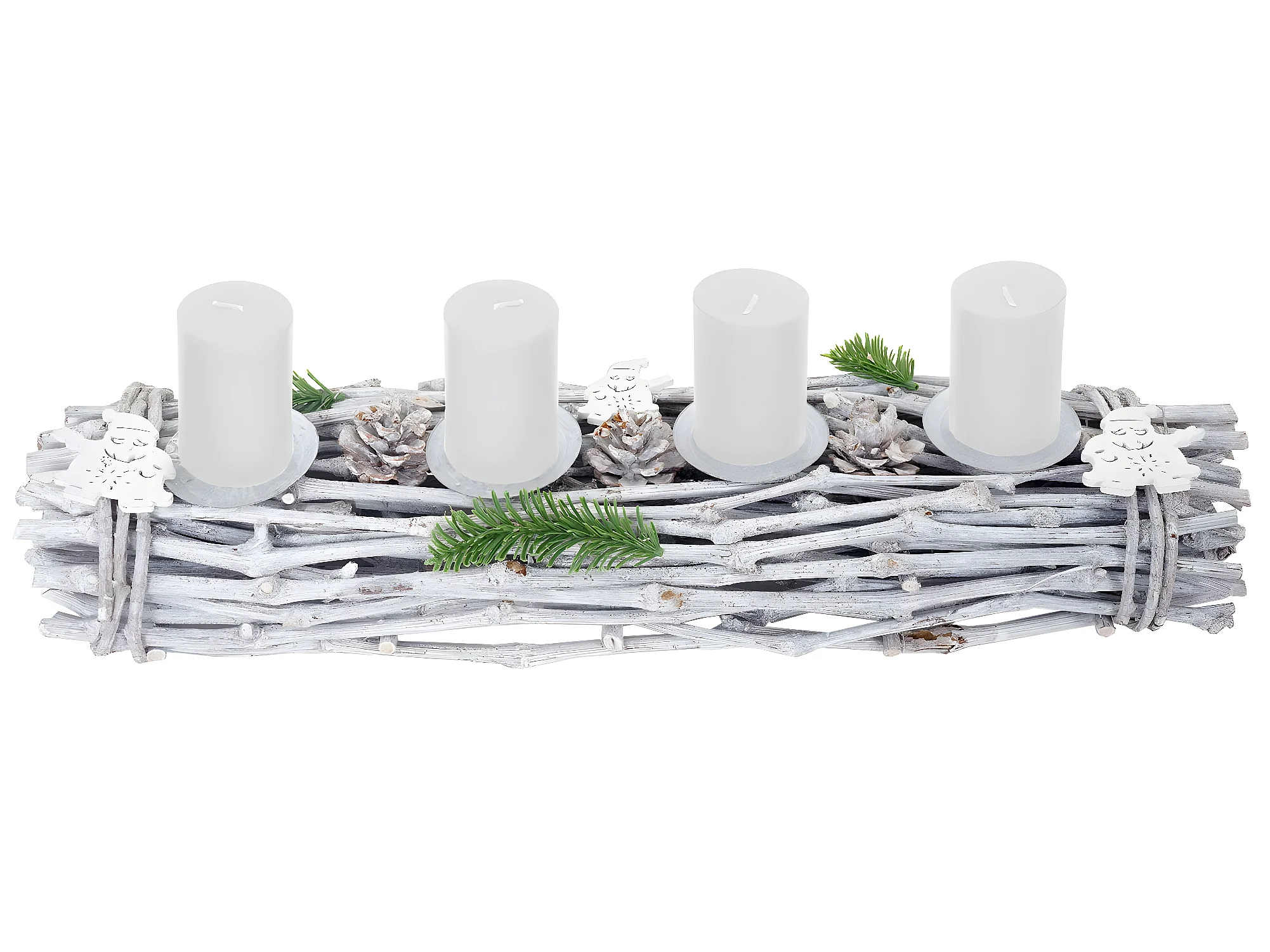 Couronne de l'Avent allongée bois blanche 60 x 16 x 9 cm 04_0002555