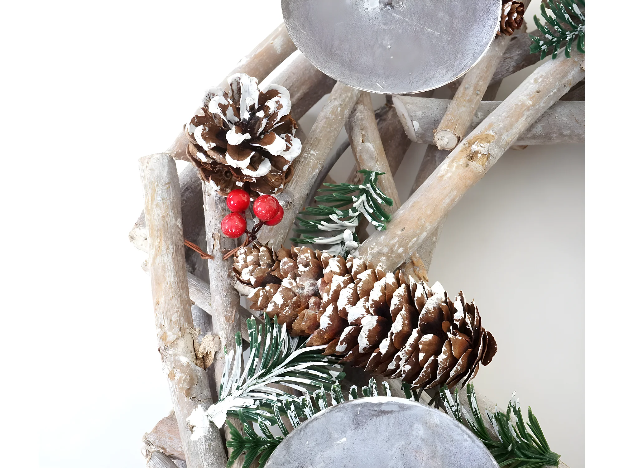 Couronne de l'Avent ronde bois blanche 35 x 35 x 11 cm 04_0002567