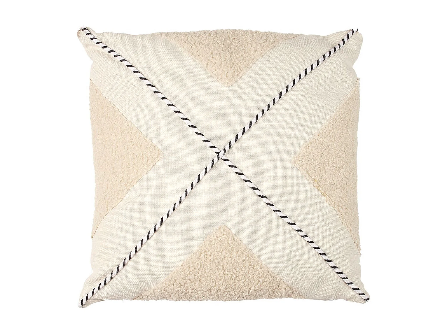 Coussin 40x40cm avec Tissu Bouclette Beige et Motif Géométrique Noir et Blanc - STACY
