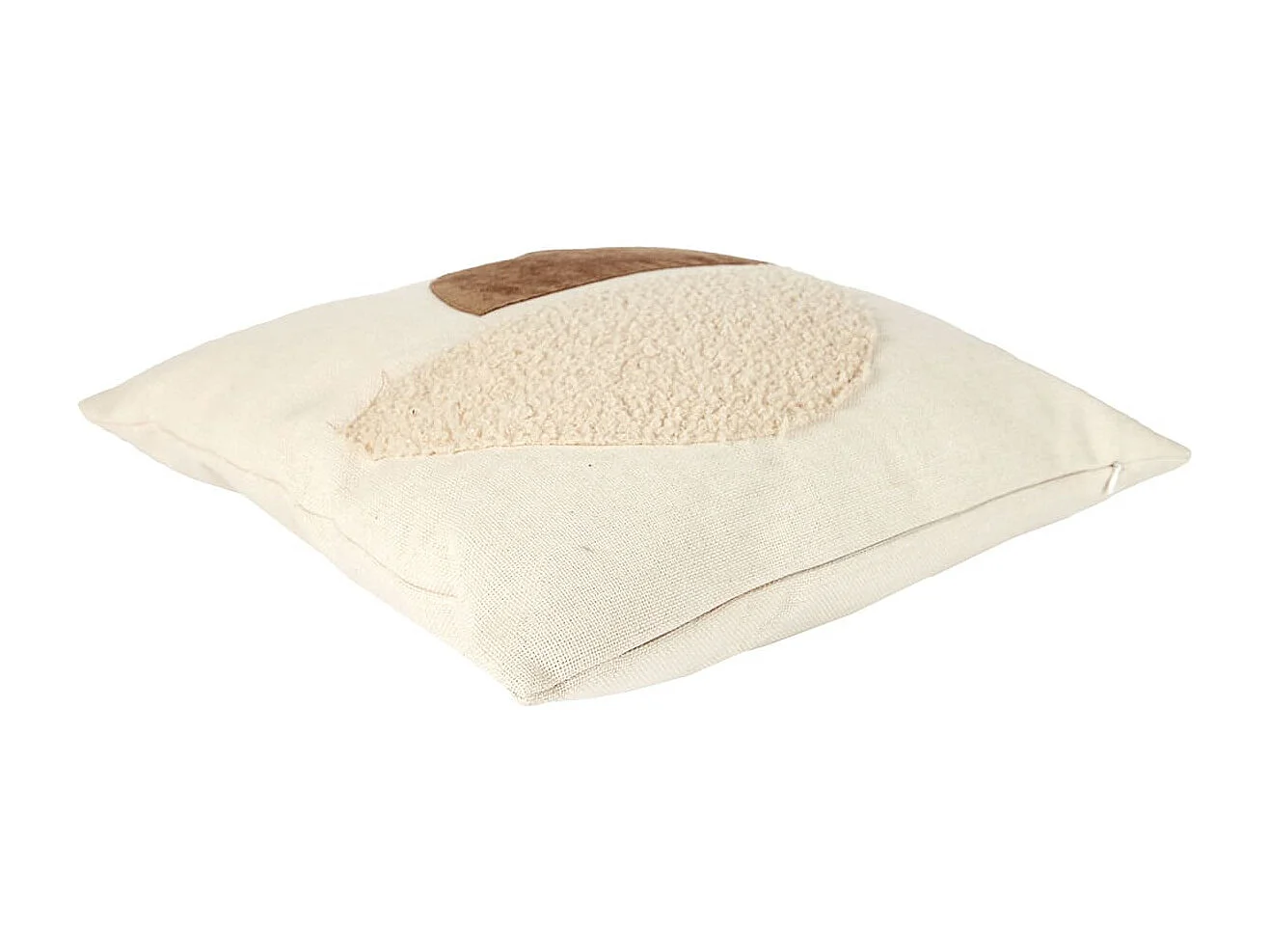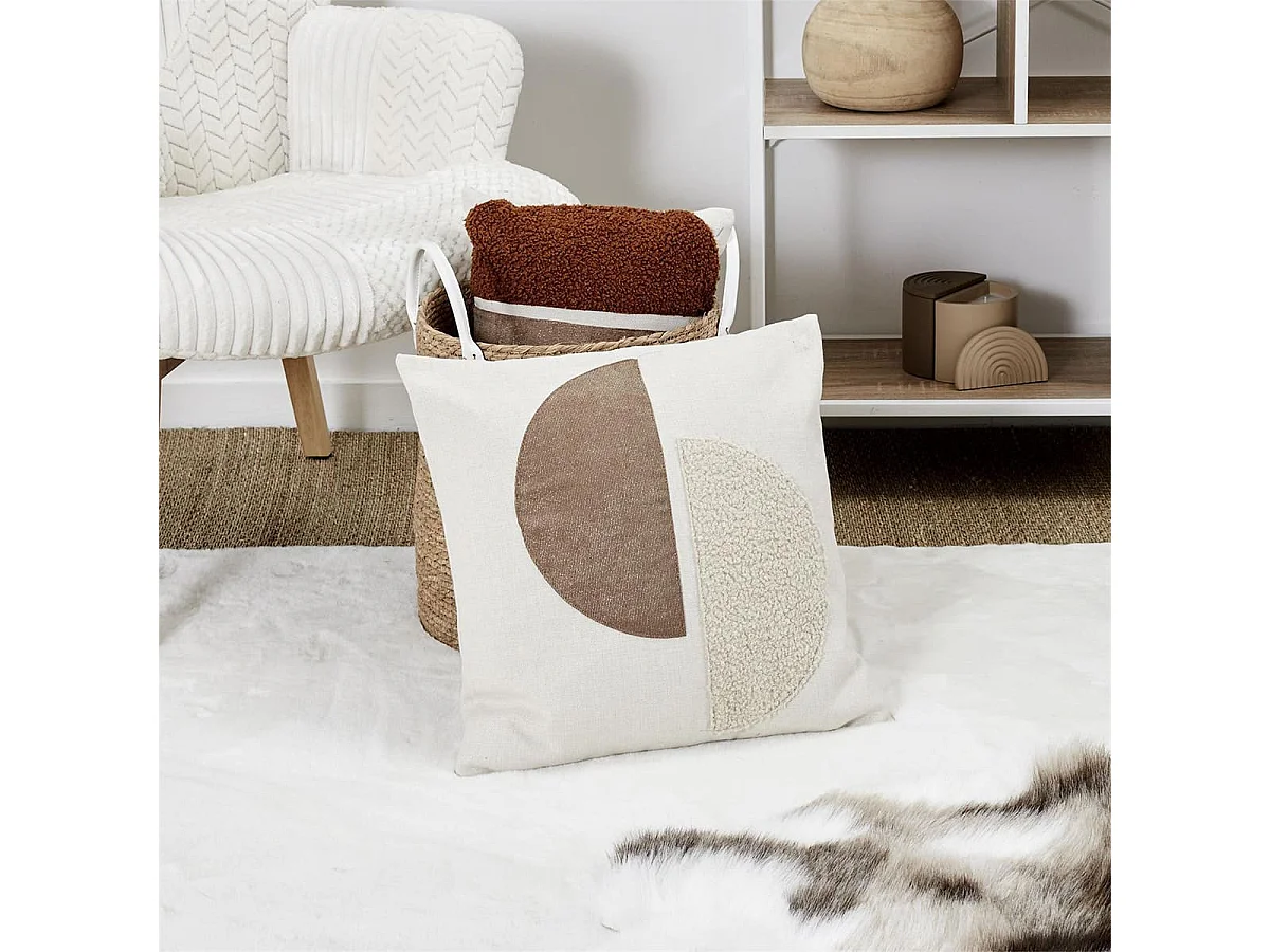 Coussin 40x40cm Crème Motifs Demi-Cercles Marron et Bouclette Déhoussable - ARCAL