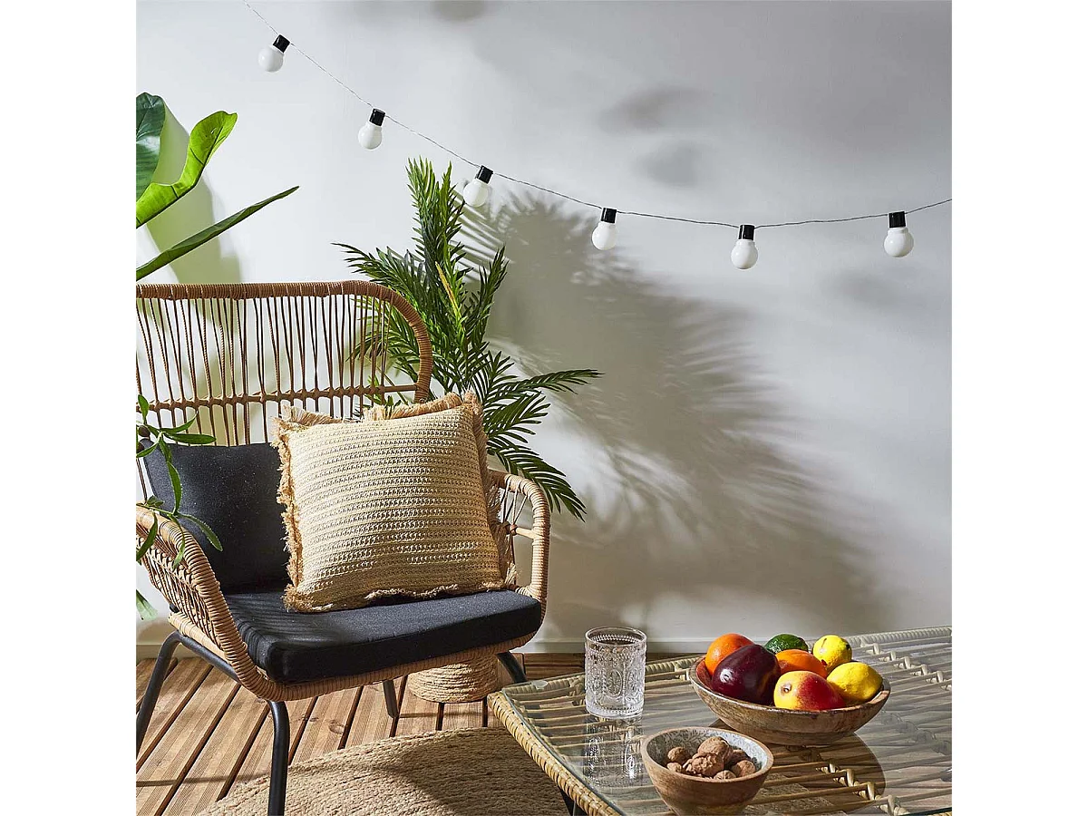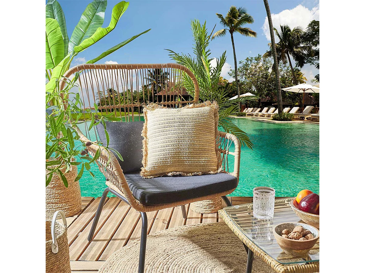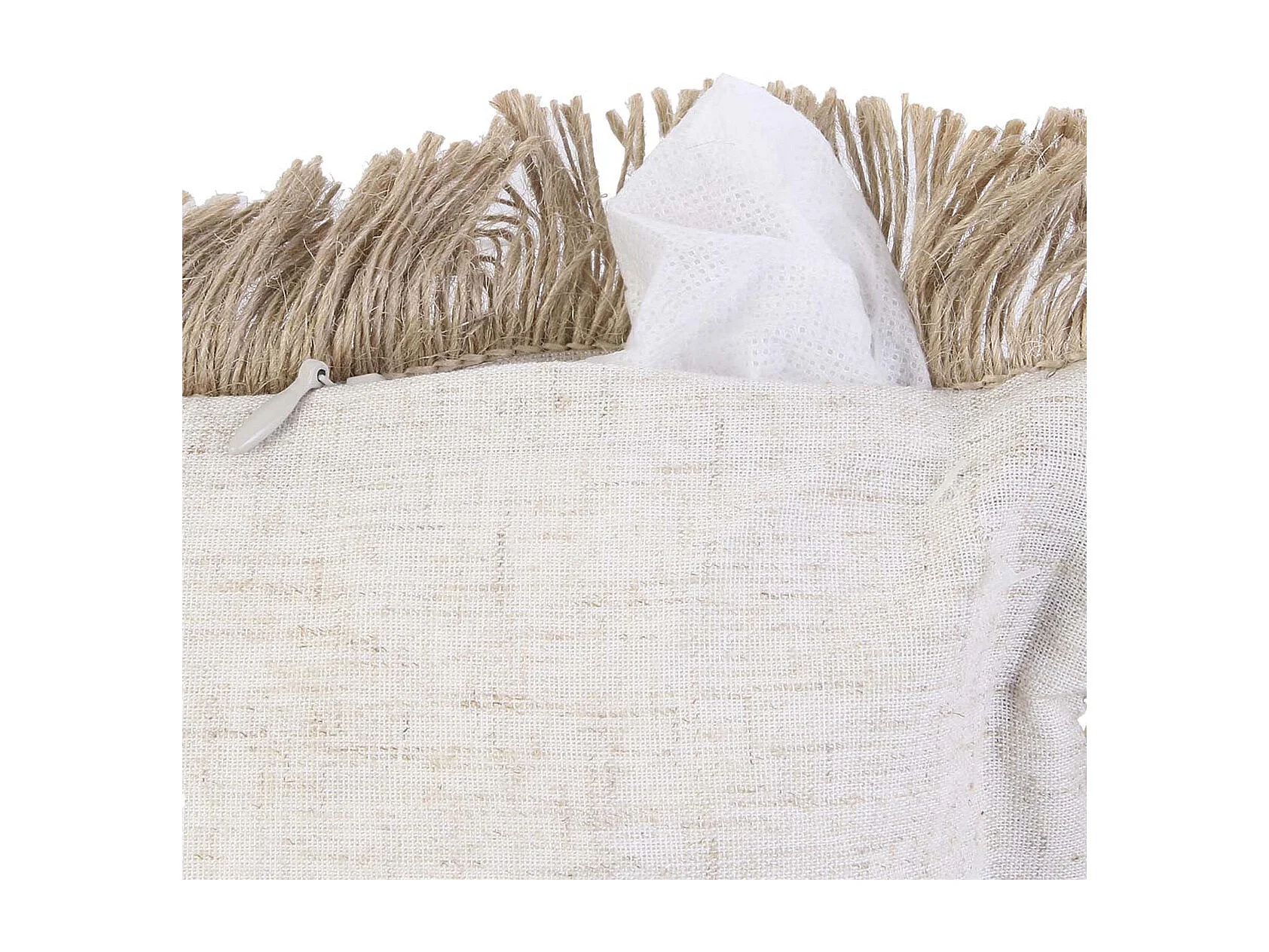 Coussin 40x40cm en Jute et Lin Tressé Doré avec Franges Déhoussable - SARRY