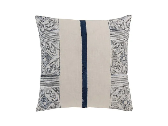Coussin Carré Coton "Aztèque" 50x50cm Bleu & Blanc