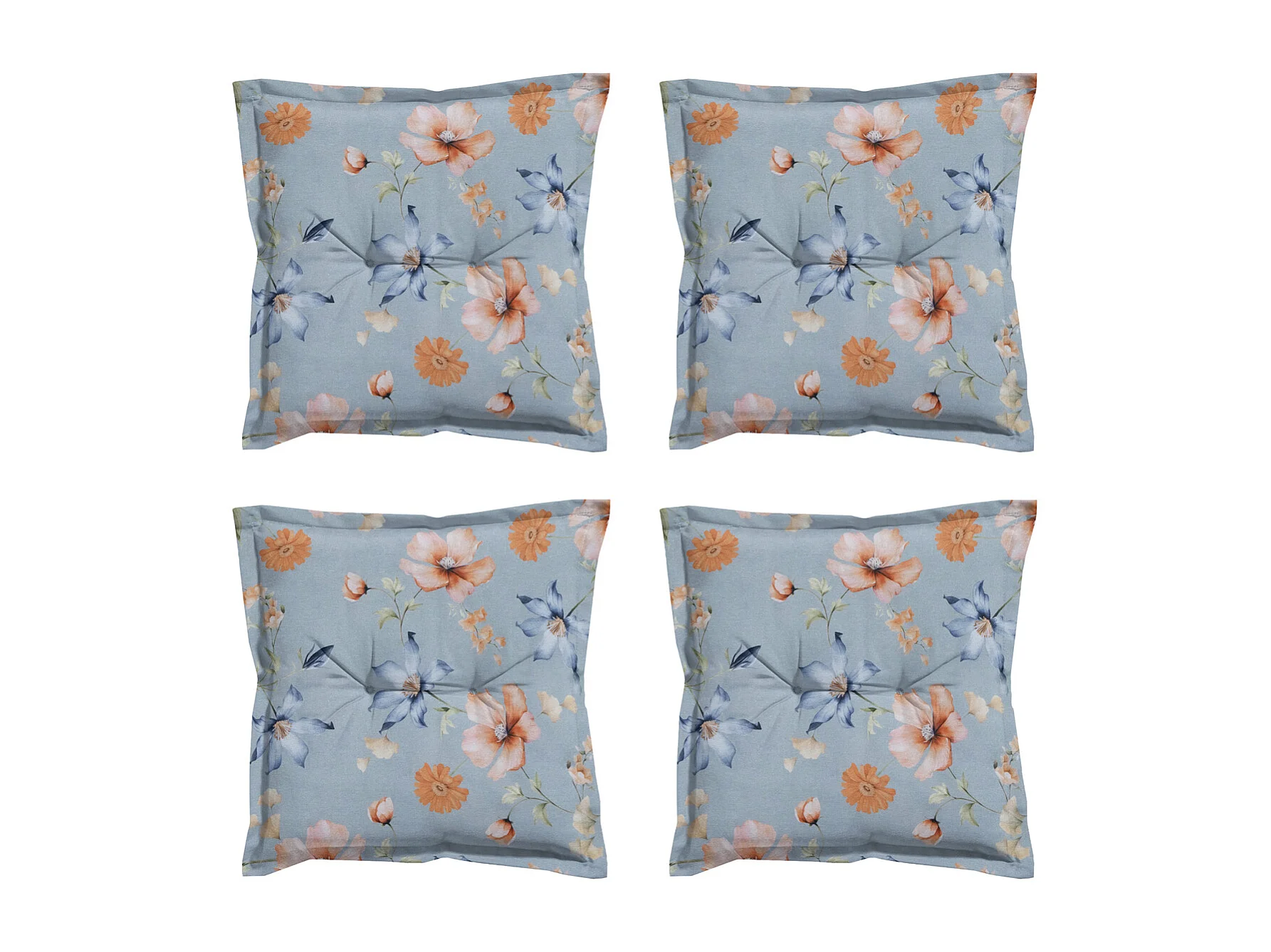 Coussin d'assise Florina bleu - Environ 50 x 50 cm - Lot de 4