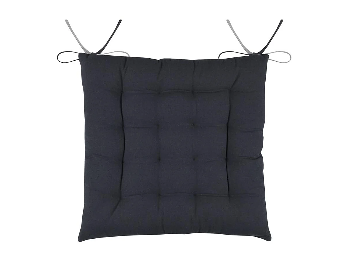 Lot de 4 galettes de chaise à rabat, 40x40 cm, gris foncé, avec nouettes, 100% polyester certifié oeko-tex, collection Basic