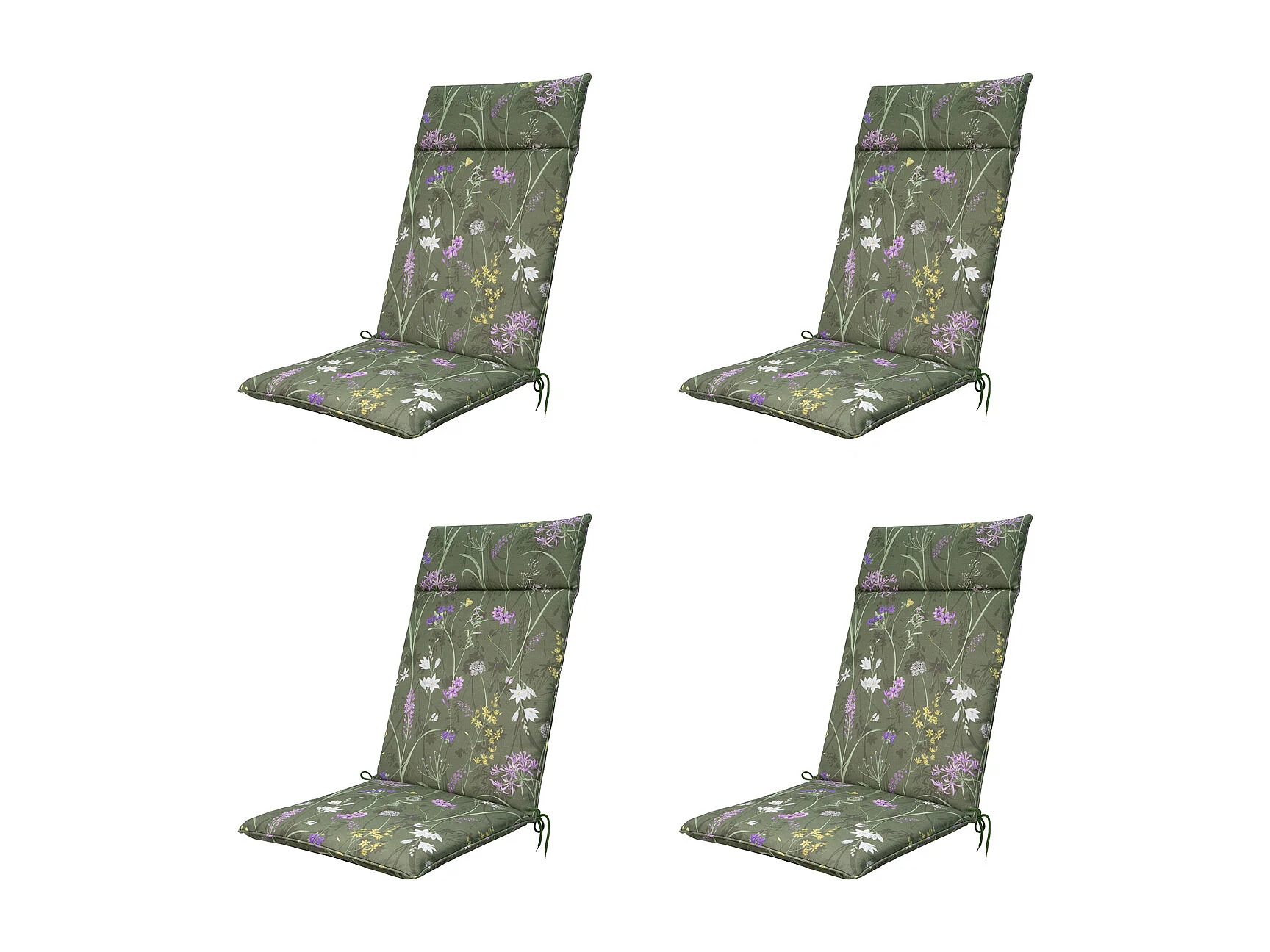 Coussin de chaise de jardin haut dossier Donna vert toile éco+ - Environ 120 x 50 cm - Lot de 4
