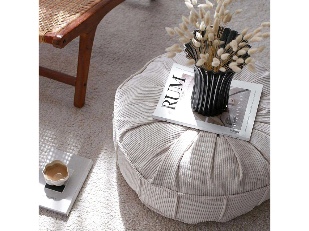 Coussin de sol 50 x 50 cm matelassé en coton blanc - DOLORES