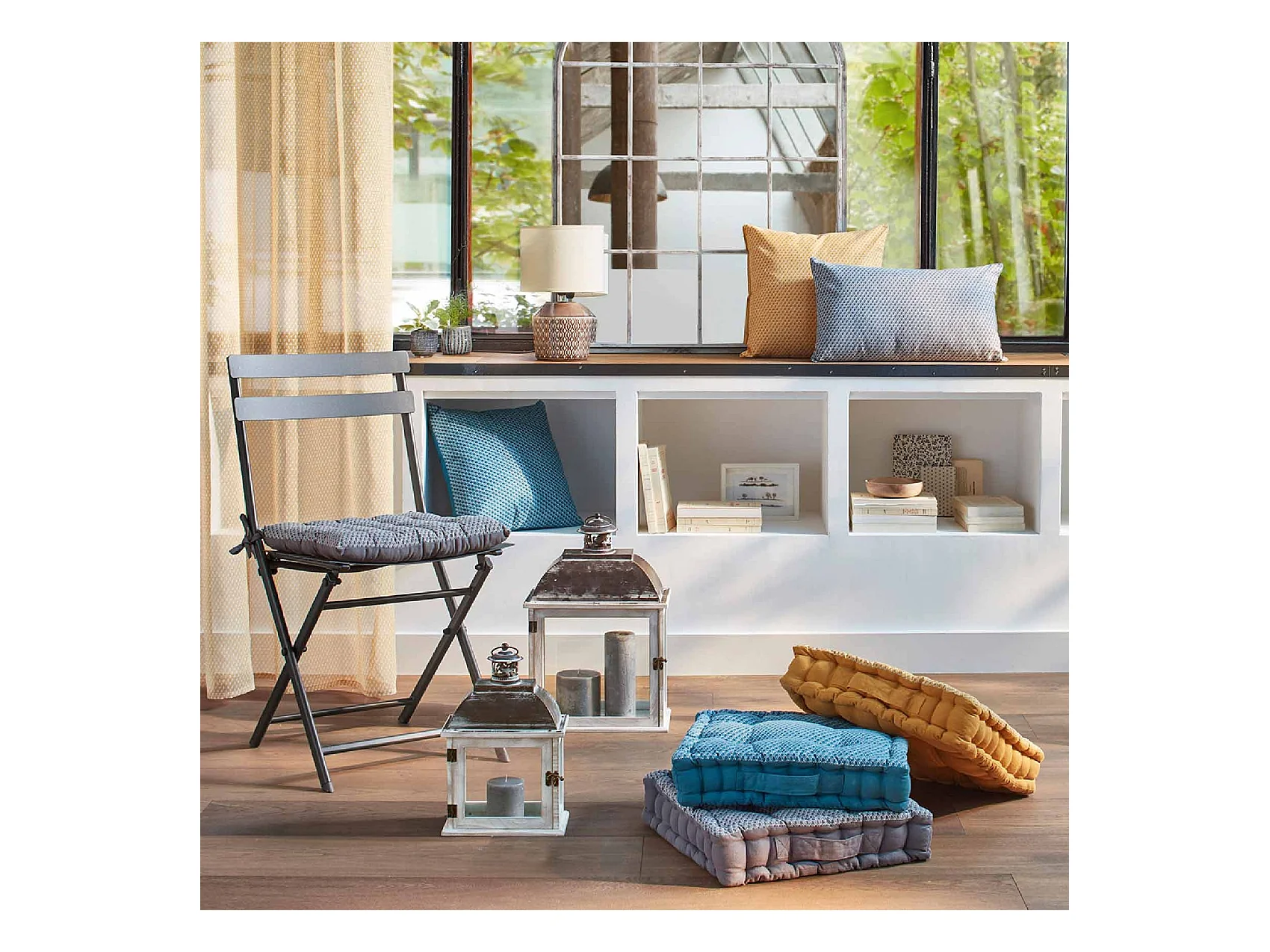 Lot de 6 coussins de sol carré, coussin d'assise en coton coloris vert céladon