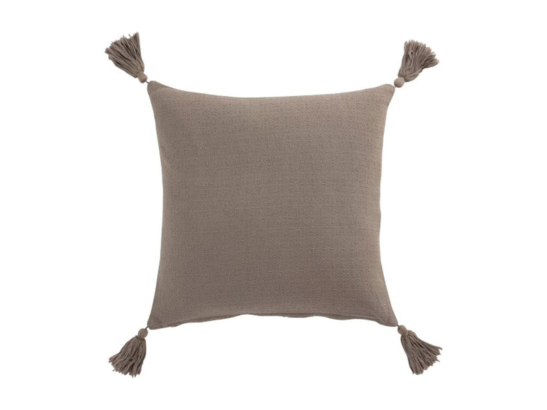 Coussin Déco Pompons "Bord Floches" 45x45cm Taupe