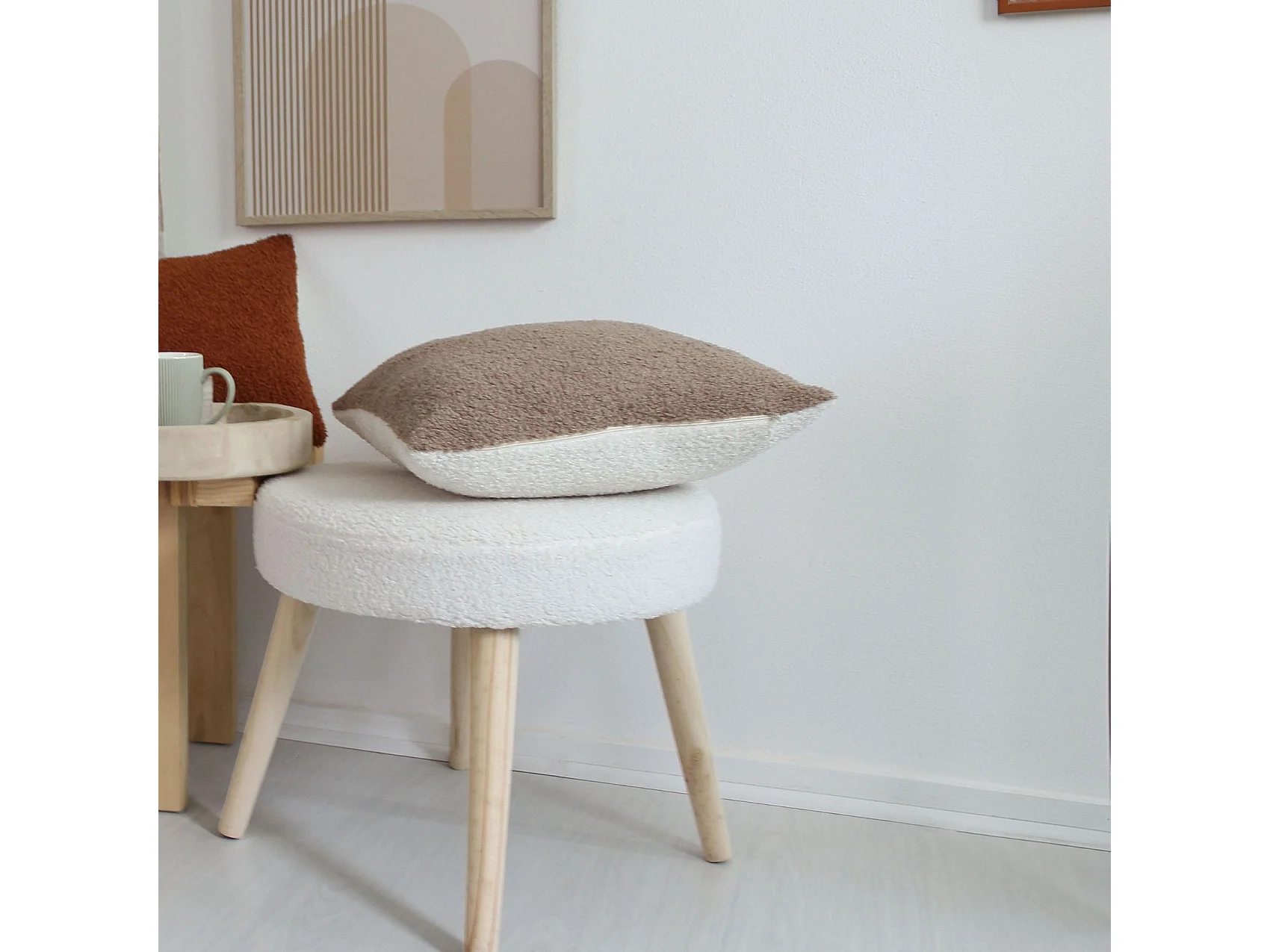 Coussin Déco Bouclé "Lodge" 40x40cm Écru & Taupe