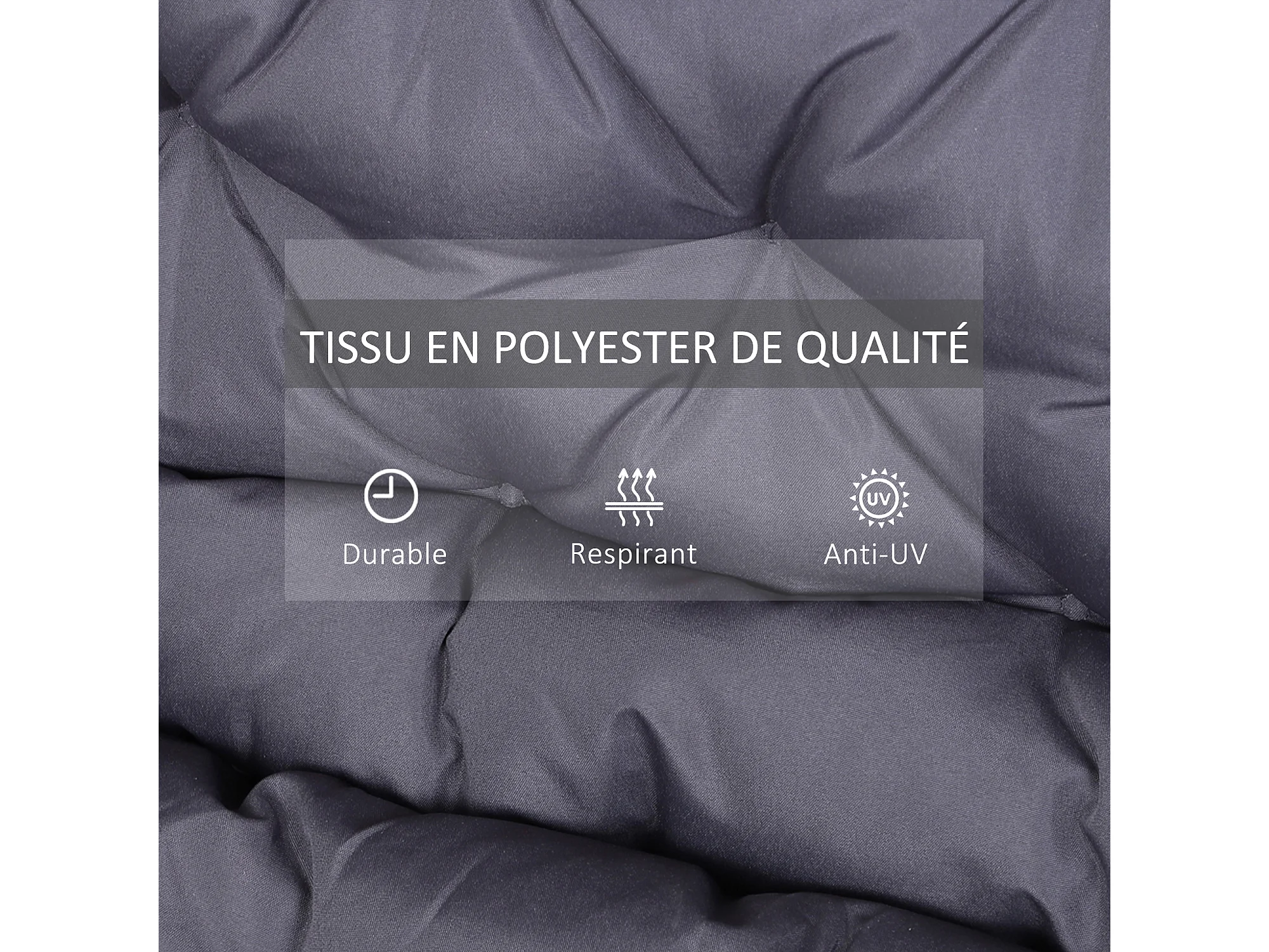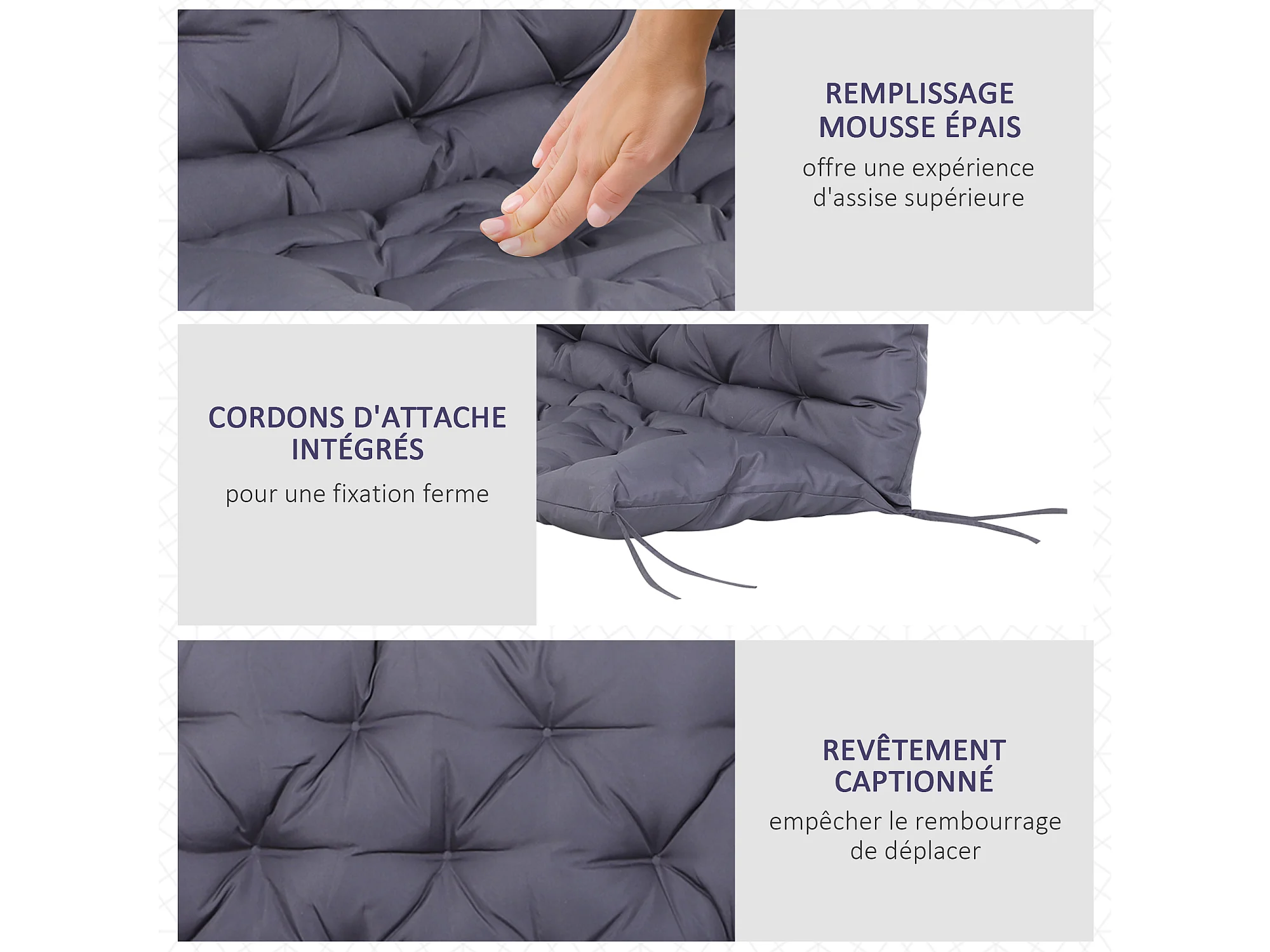 Coussin matelas assise dossier pour banc de jardin balancelle canapé 2 places grand confort 132 x 110 x 10 cm gris