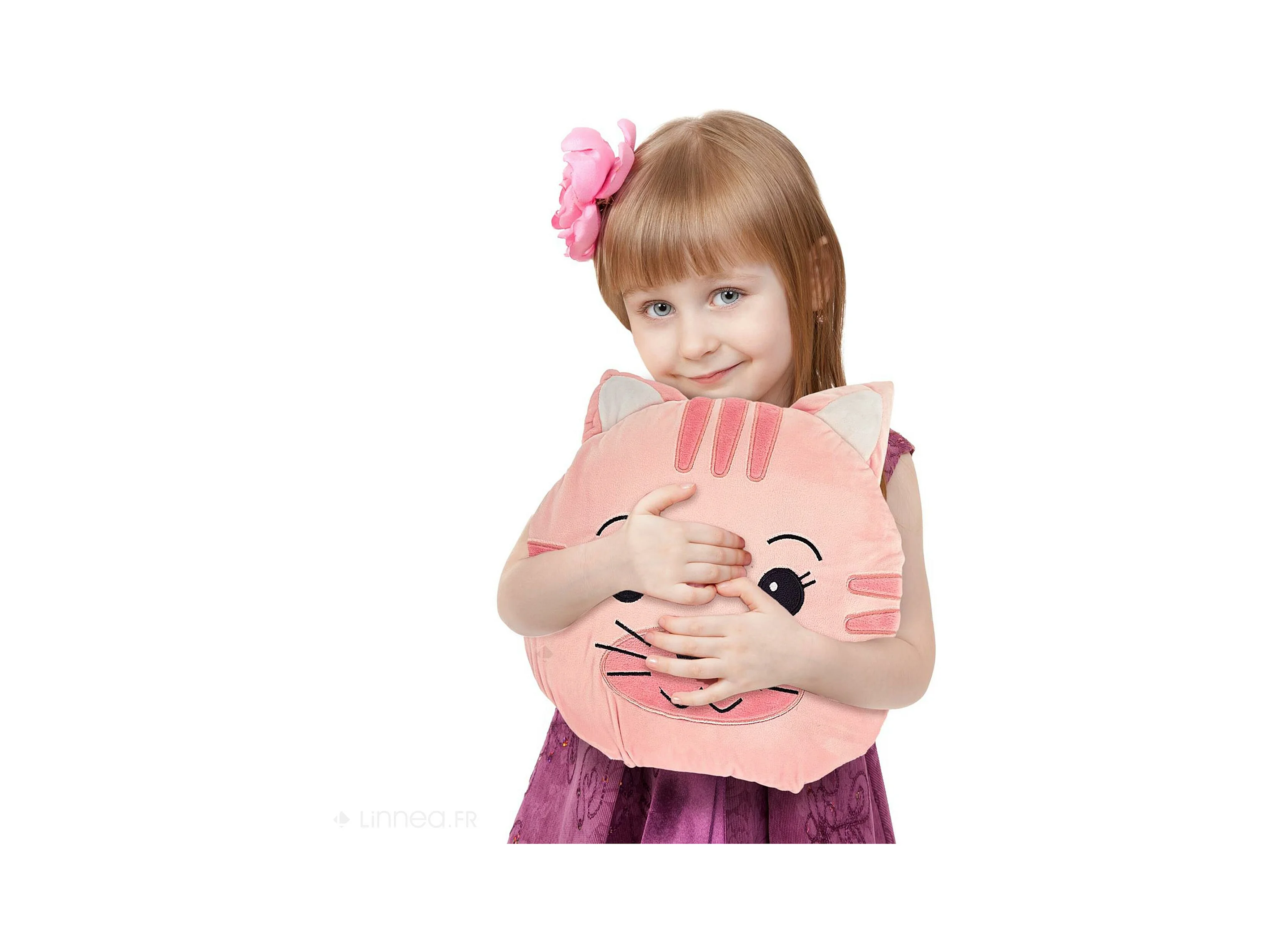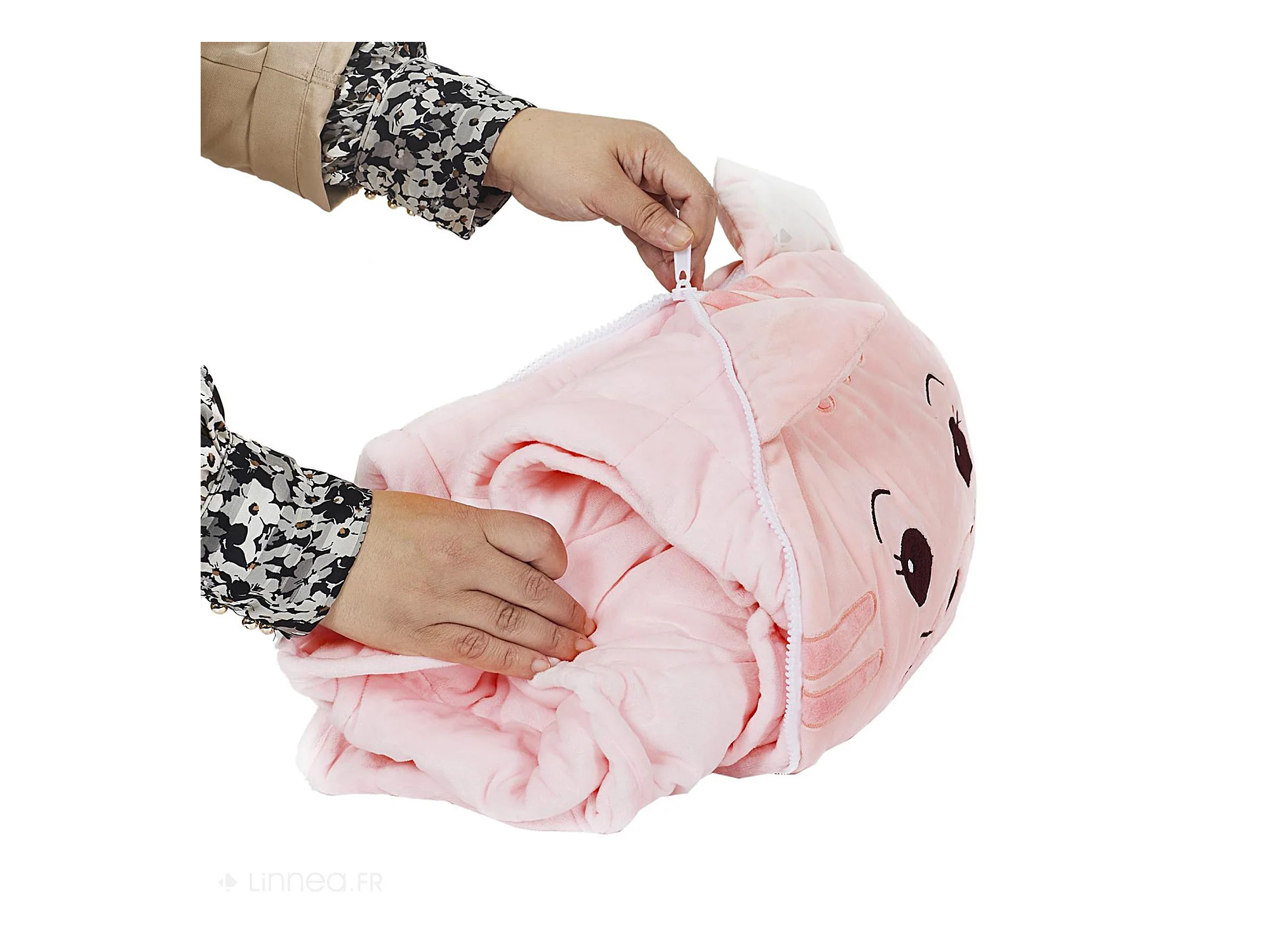 Coussin plaid 110x150 cm 100% polyester collection ANIMAUX chat rose