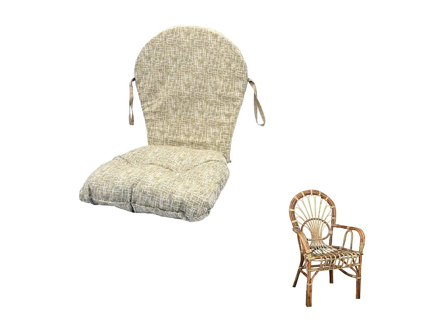 Coussin pour fauteuil grande semelle en osier et bambou motif beige