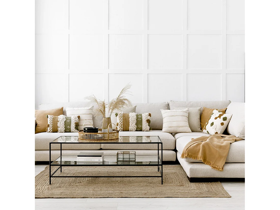 Coussin textile moutarde 45 cm x 45 cm-Sira