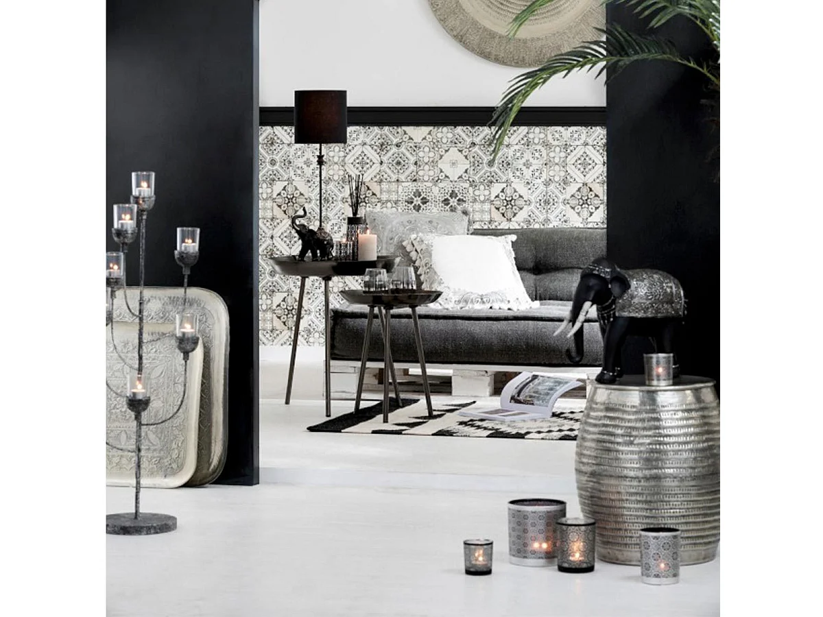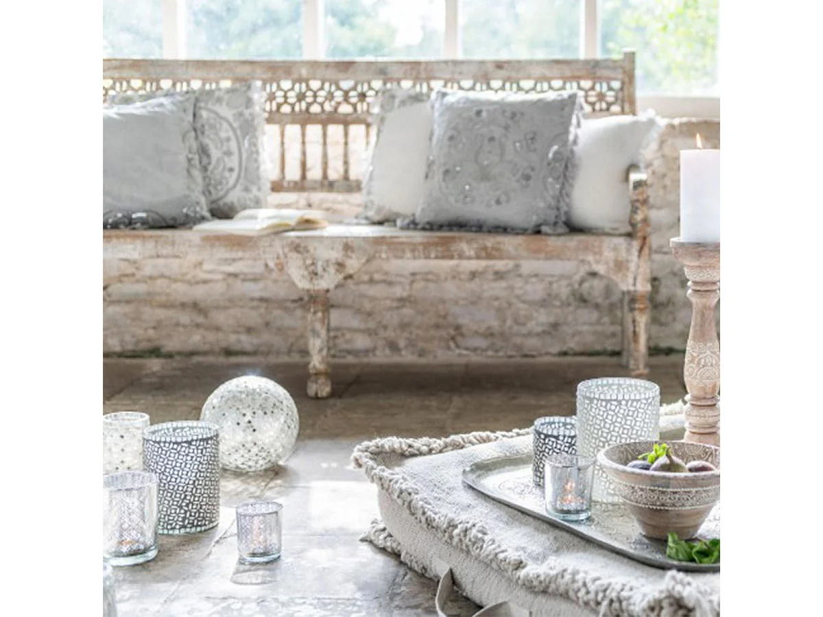 Coussin Déco Imprimé "Baya" 40x40cm Gris Clair