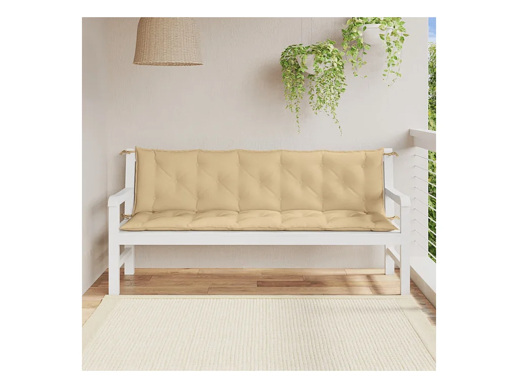 Coussins de banc jardin lot de 2 beige 180x50x7 cm tissu Oxford FR422564