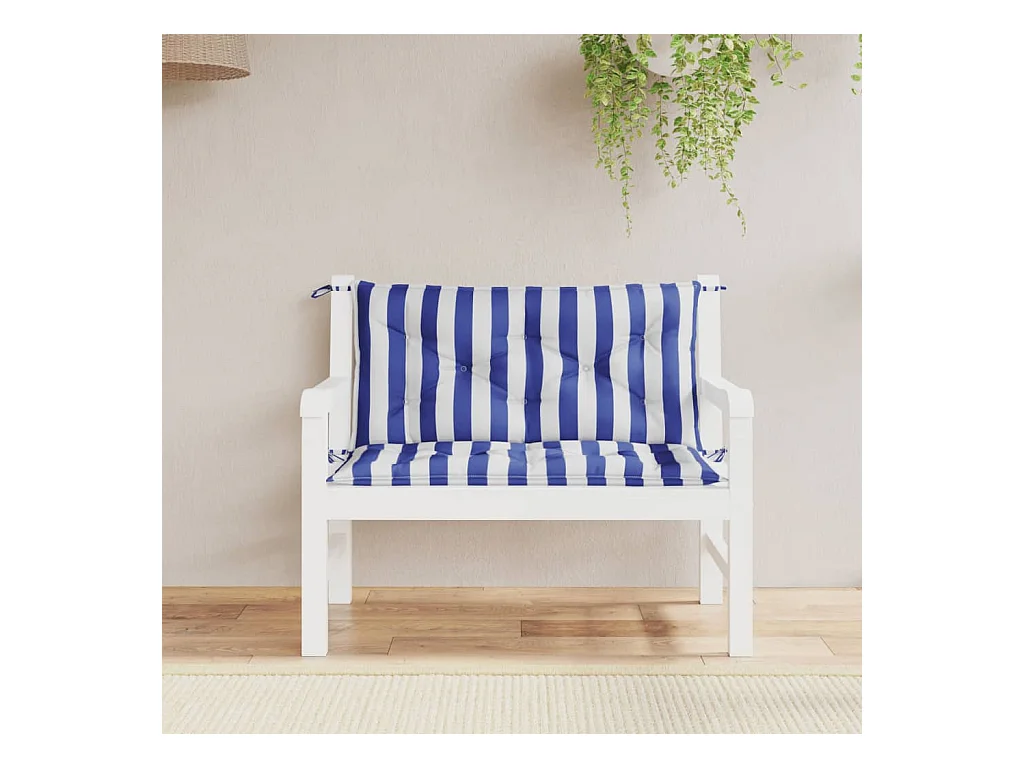 Coussin de banc de jardin rayures bleues et blanches 100x50x7cm