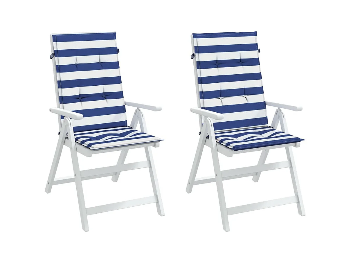 Coussins de chaise à dossier haut 2pcs rayures bleu/blanc tissu OFR74080