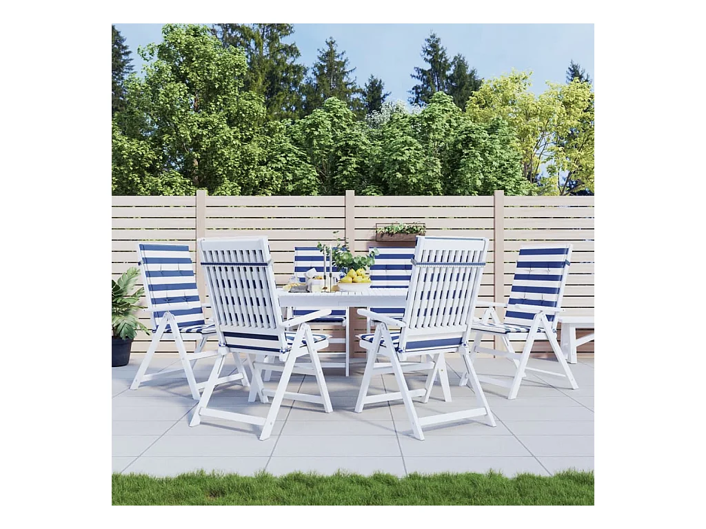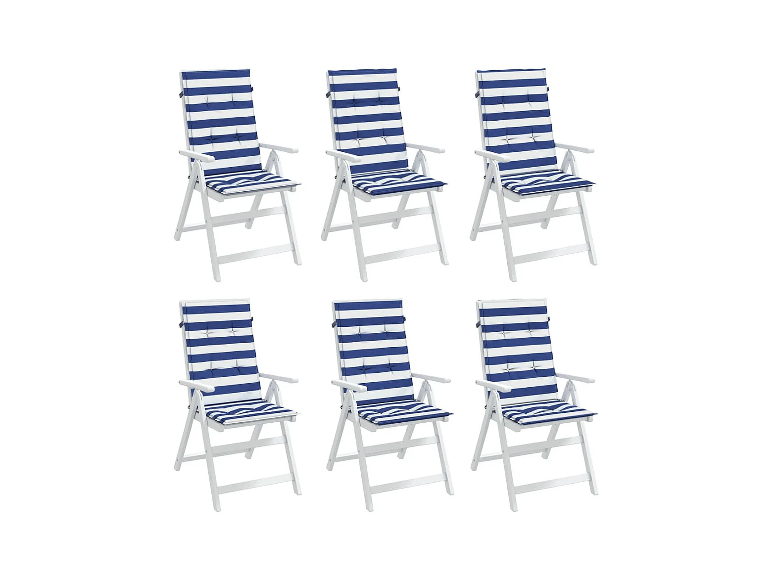Coussins de chaise à dossier haut 6pcs rayures bleu/blanc tissu OFR19376