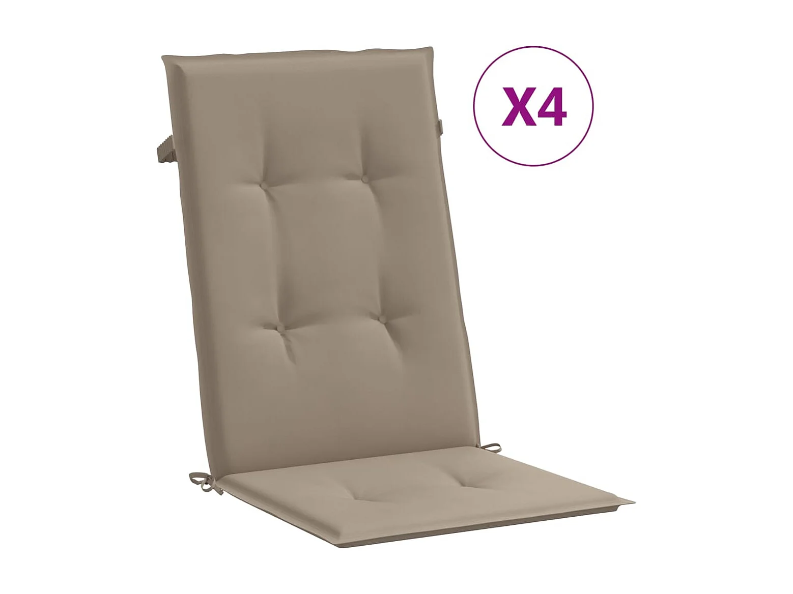 Coussins de chaise de jardin dossier haut lot de 4 taupe tissu