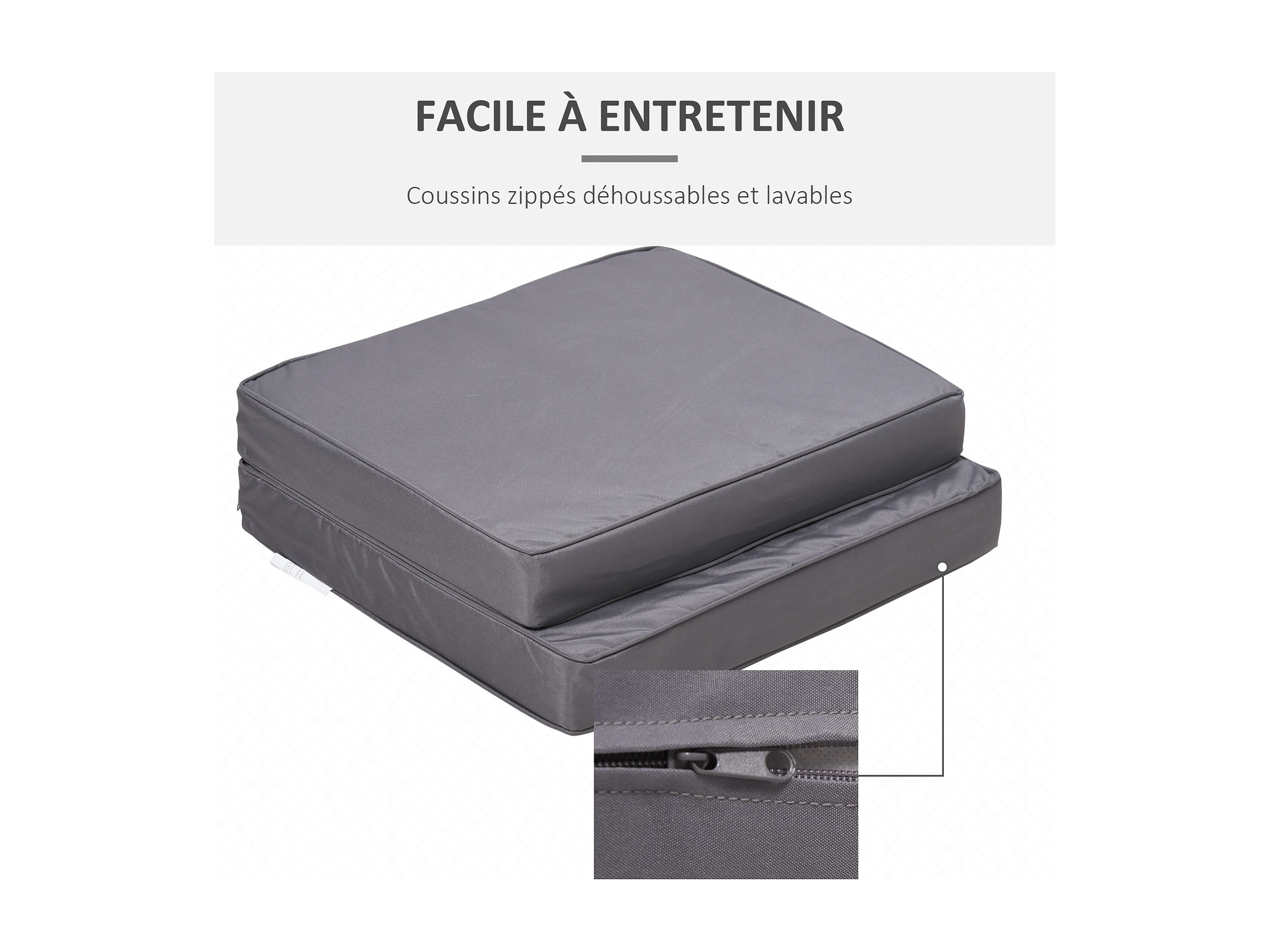 Coussins de fauteuil de jardin zippés déhoussables - galettes de chaise de jardin - épais rembourrage 7 cm - polyester haute densité gris