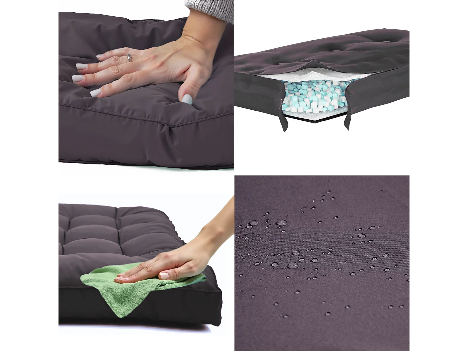 Coussins pour salon de jardin capitonné 50x50cm gris carbone