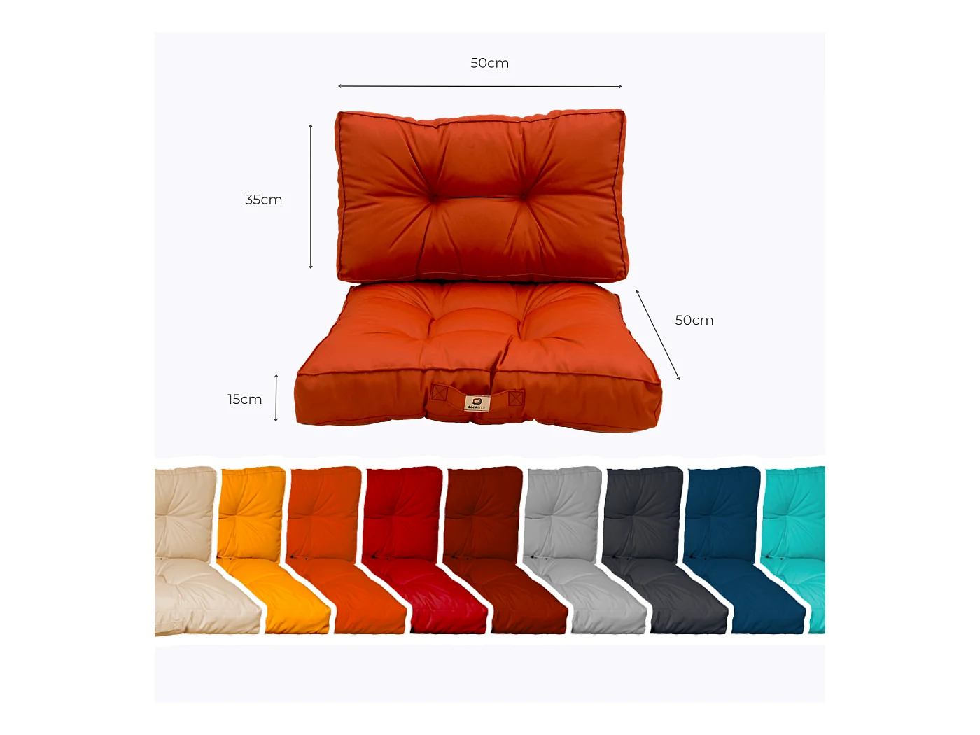 Lot coussins extérieur pour palette orange 120x80 Imperméables Anti-UV DECOARTS