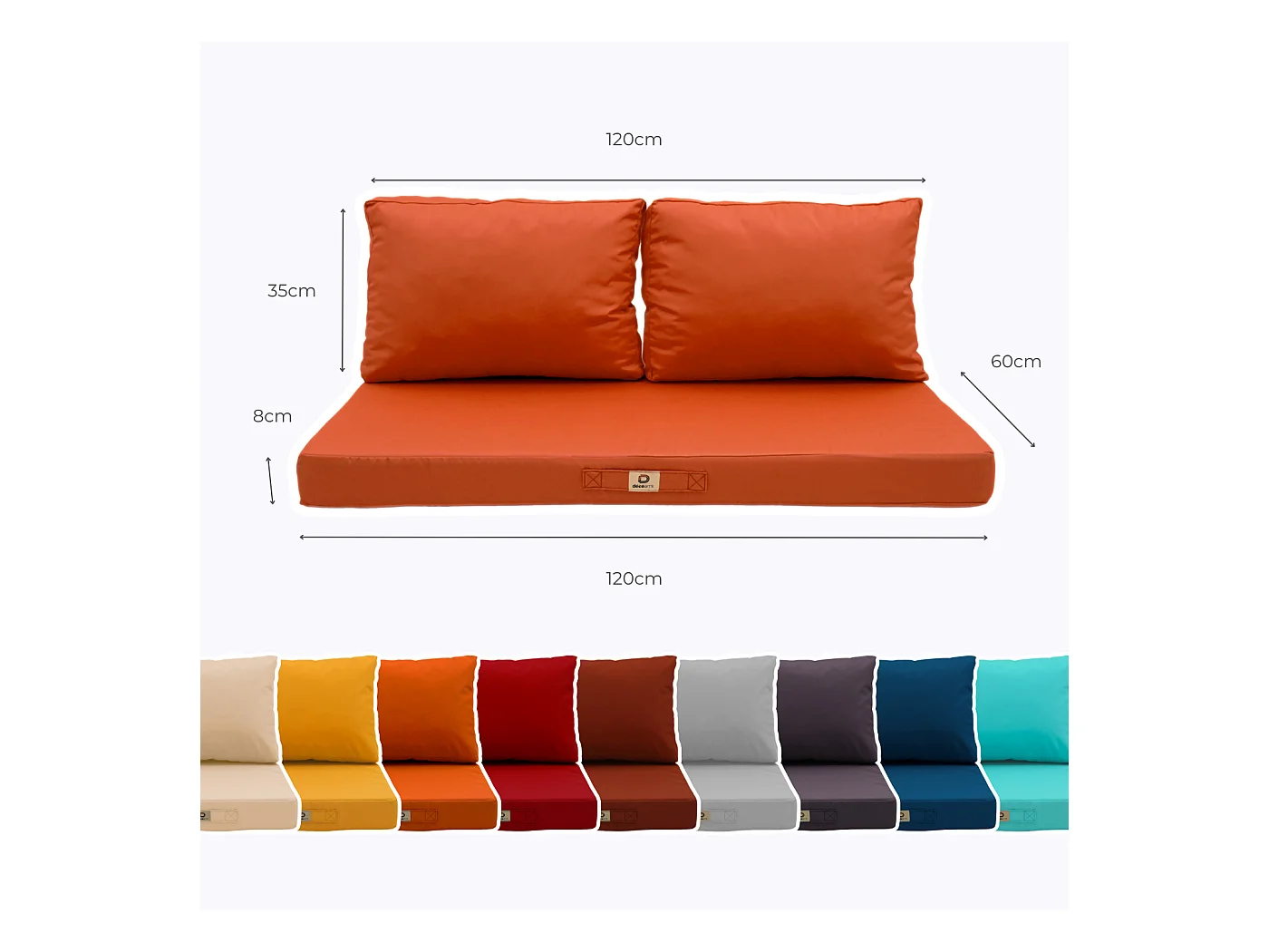 Lot coussins extérieur pour palette orange 120x80 Imperméables Anti-UV DECOARTS
