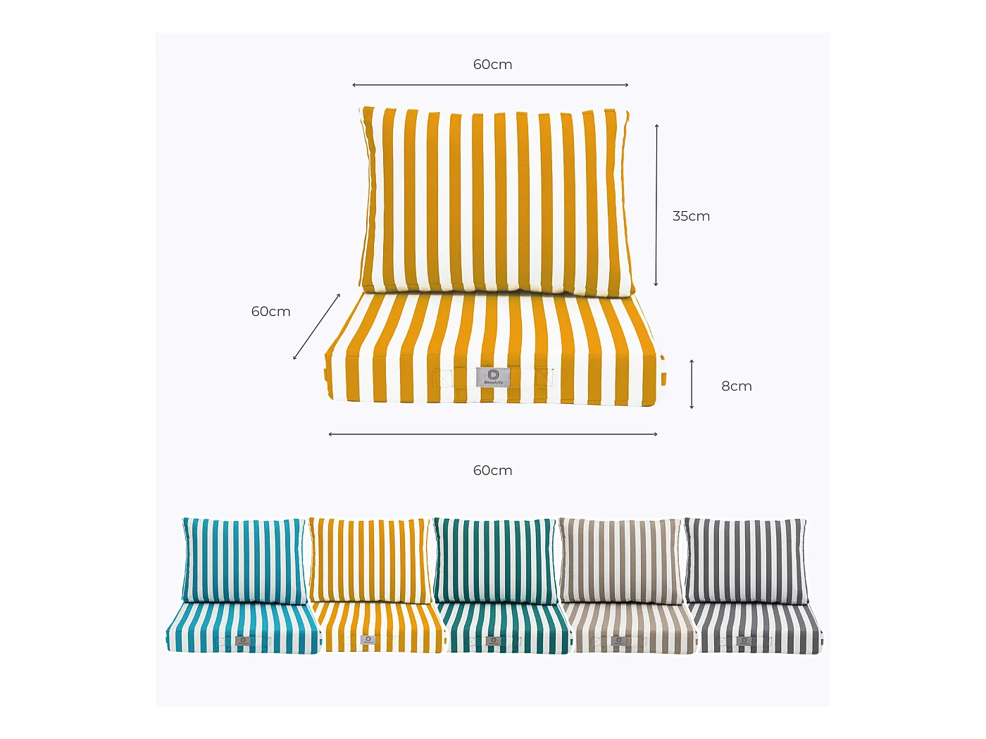Coussins pour salon de jardin déhoussable 60x60cm - Rayure Jaune