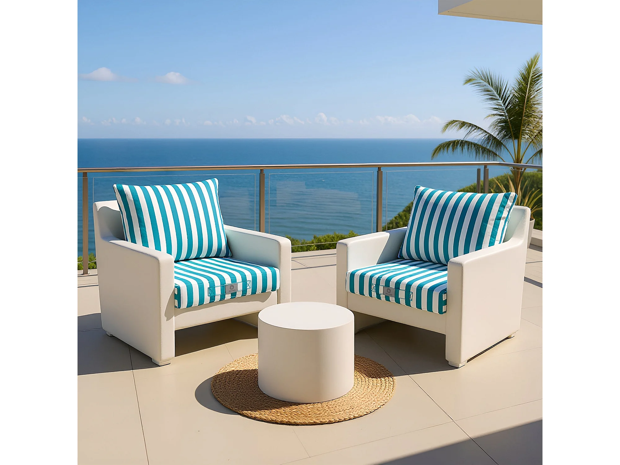 Coussins pour salon de jardin déhoussable 60x60cm - Rayure Turquoise