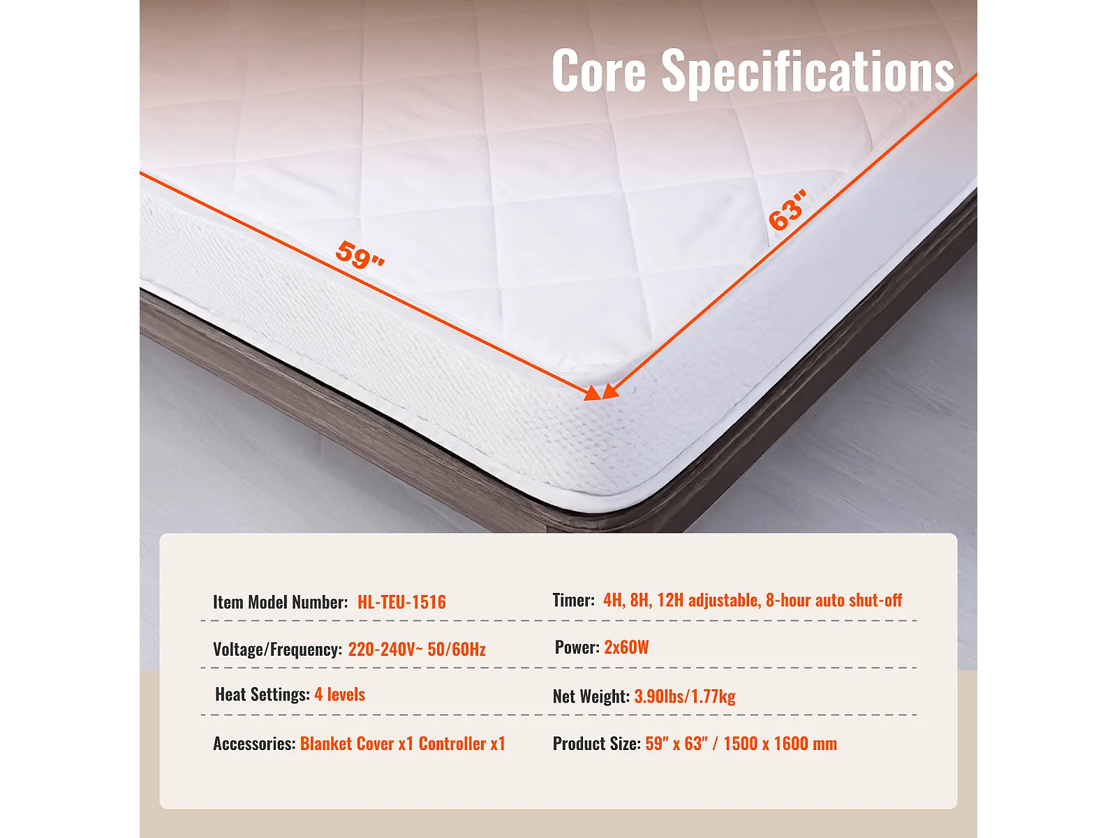 Chauffe-lit électrique 60W laine blanc