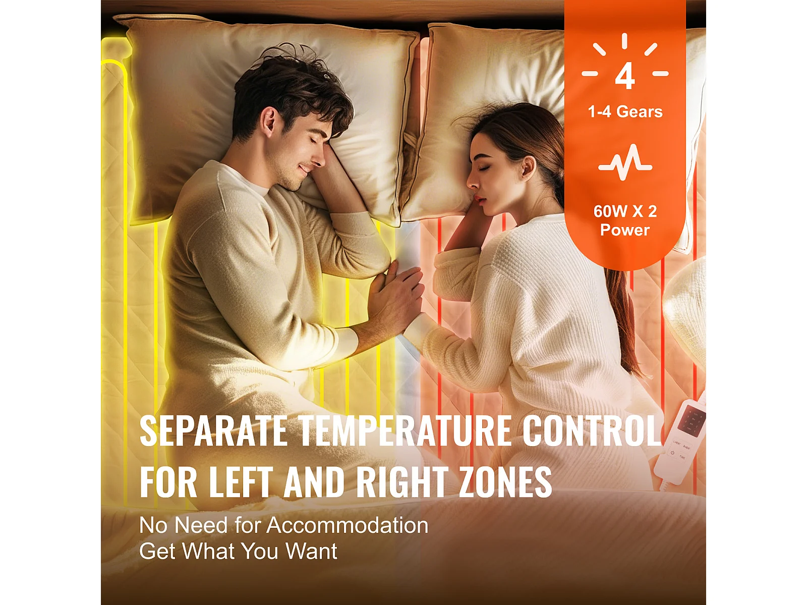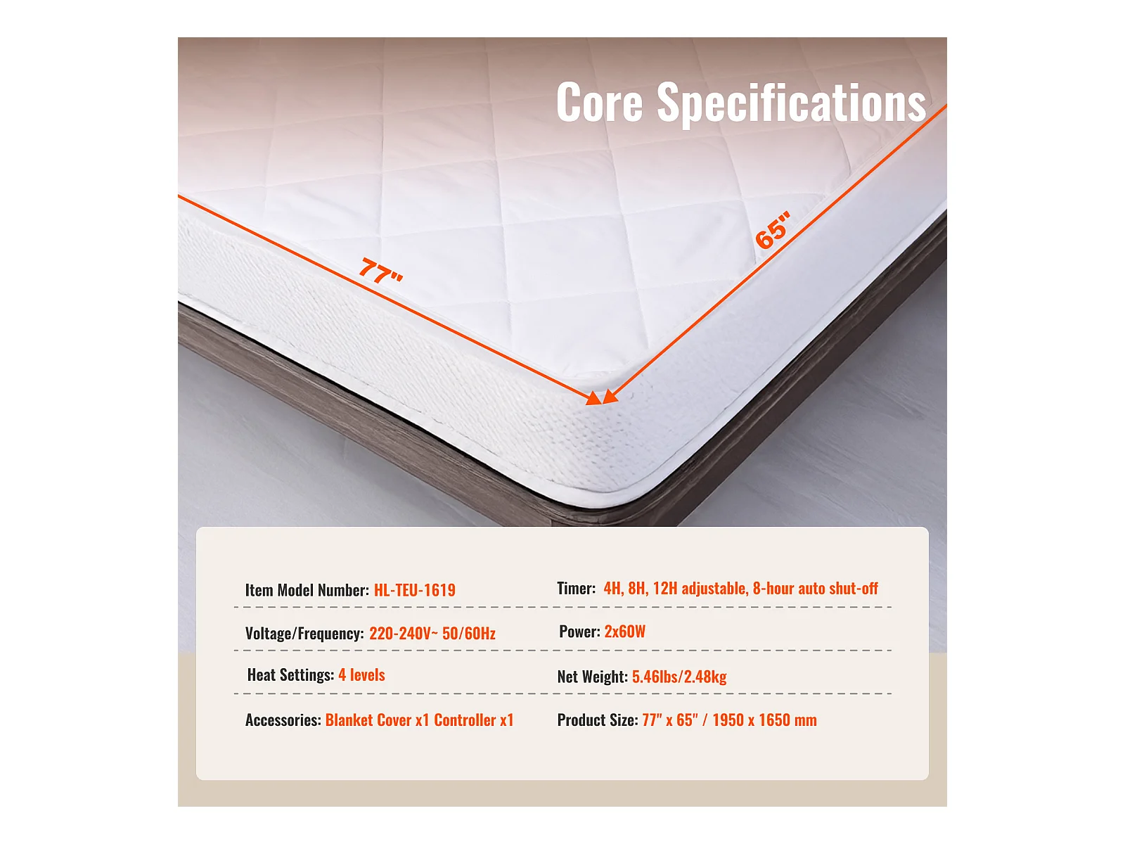 Couverture Chauffante Électrique, SucceBuy Surmatelas Chauffant 195 x 165 cm, Queen, Chauffe-matelas Électrique avec Minuterie