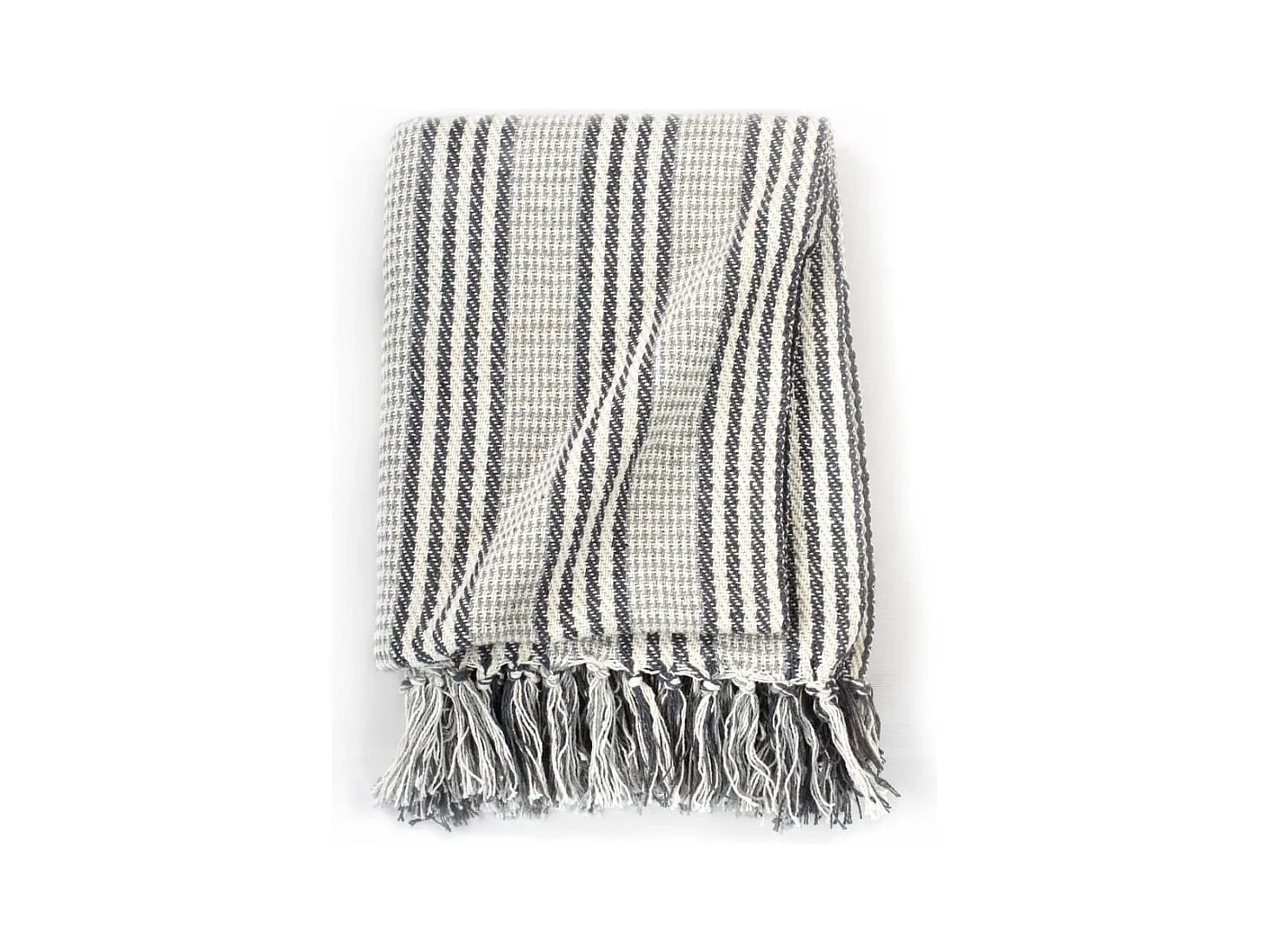 Couverture coton à rayures 220x250 cm Gris et Blanc FR619942