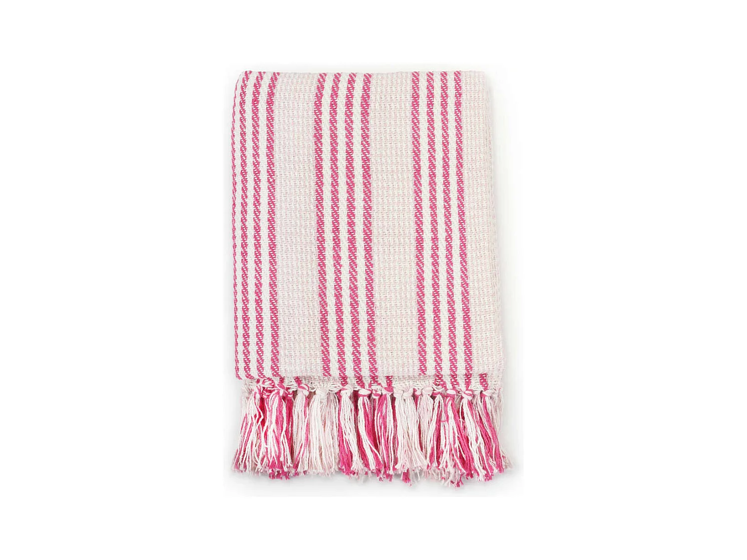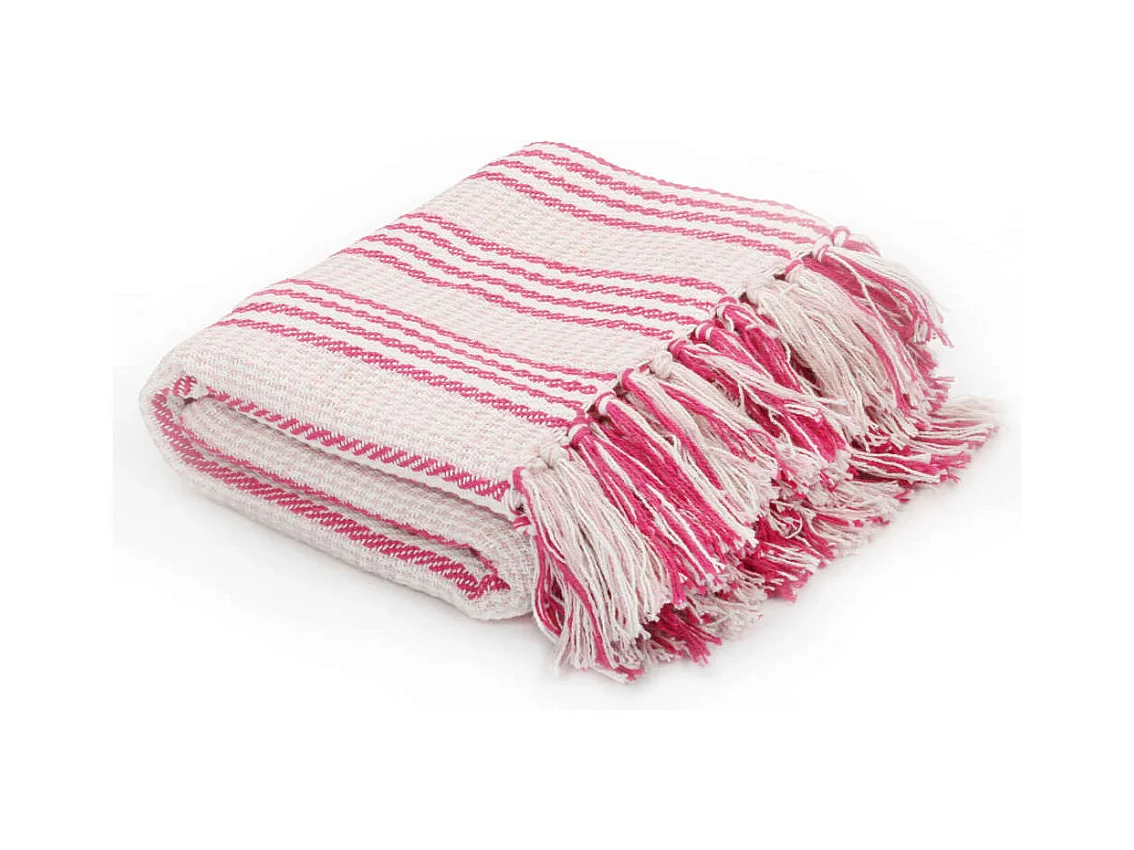 Couverture coton à rayures 160x210 cm Rose et Blanc