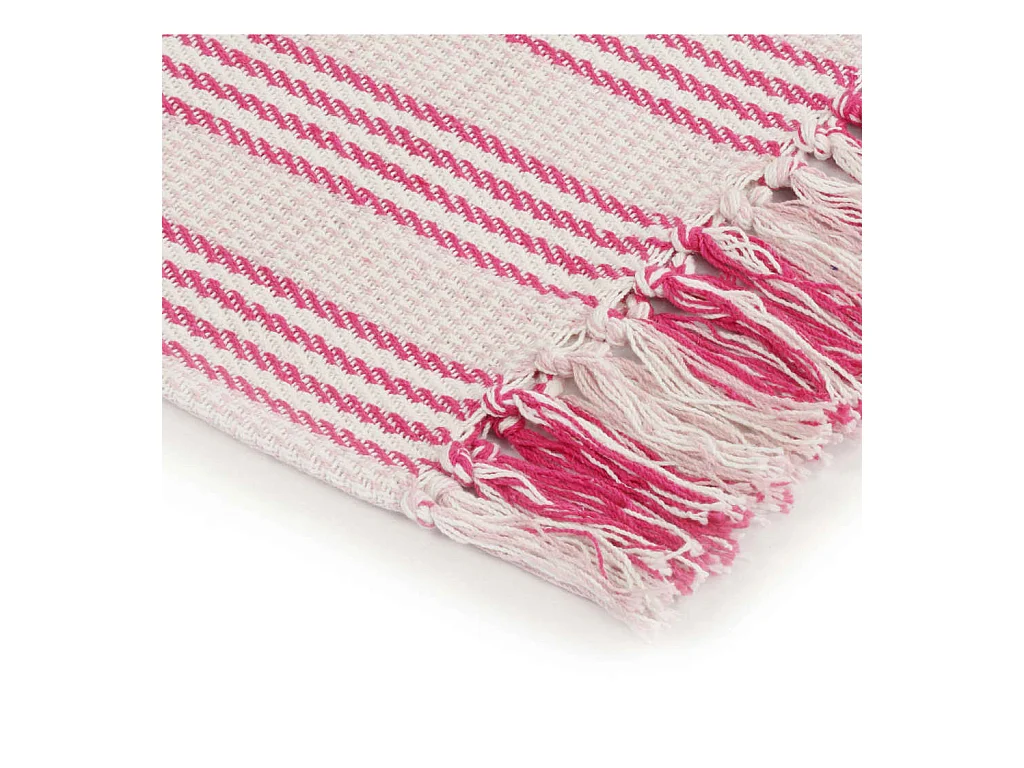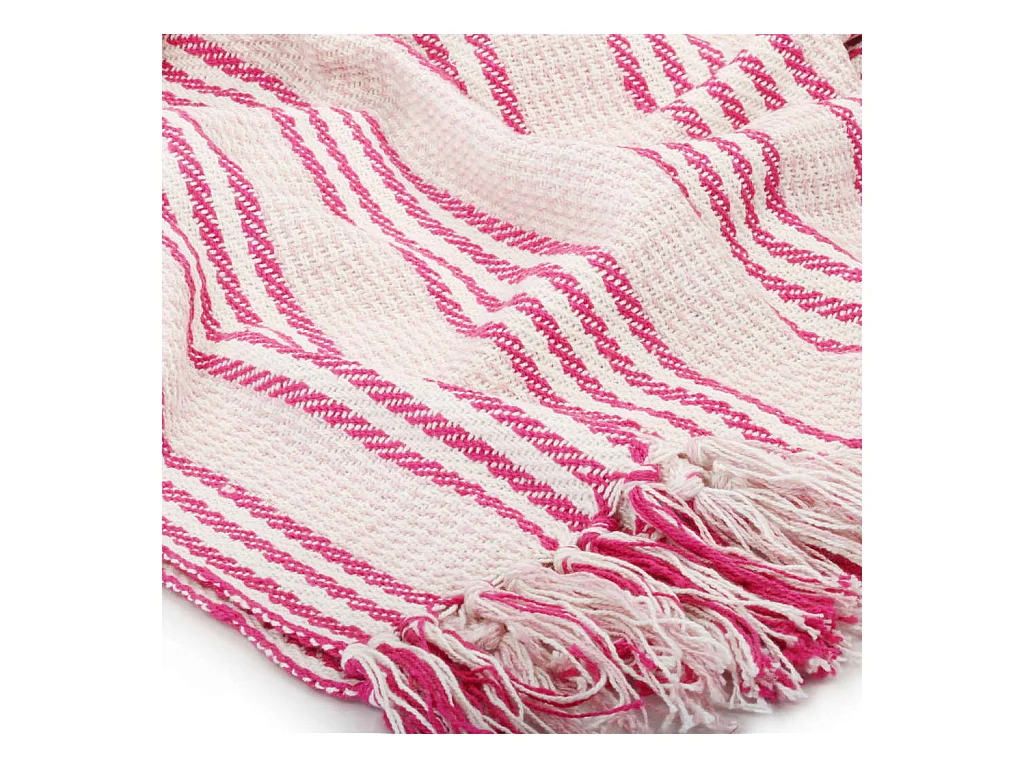 Couverture coton à rayures 160x210 cm Rose et Blanc FR893823