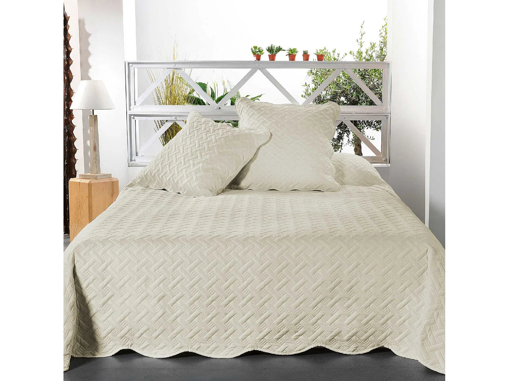 Dessus de Lit en Coton Beige avec franges et motifs en relief 240 x 260 cm