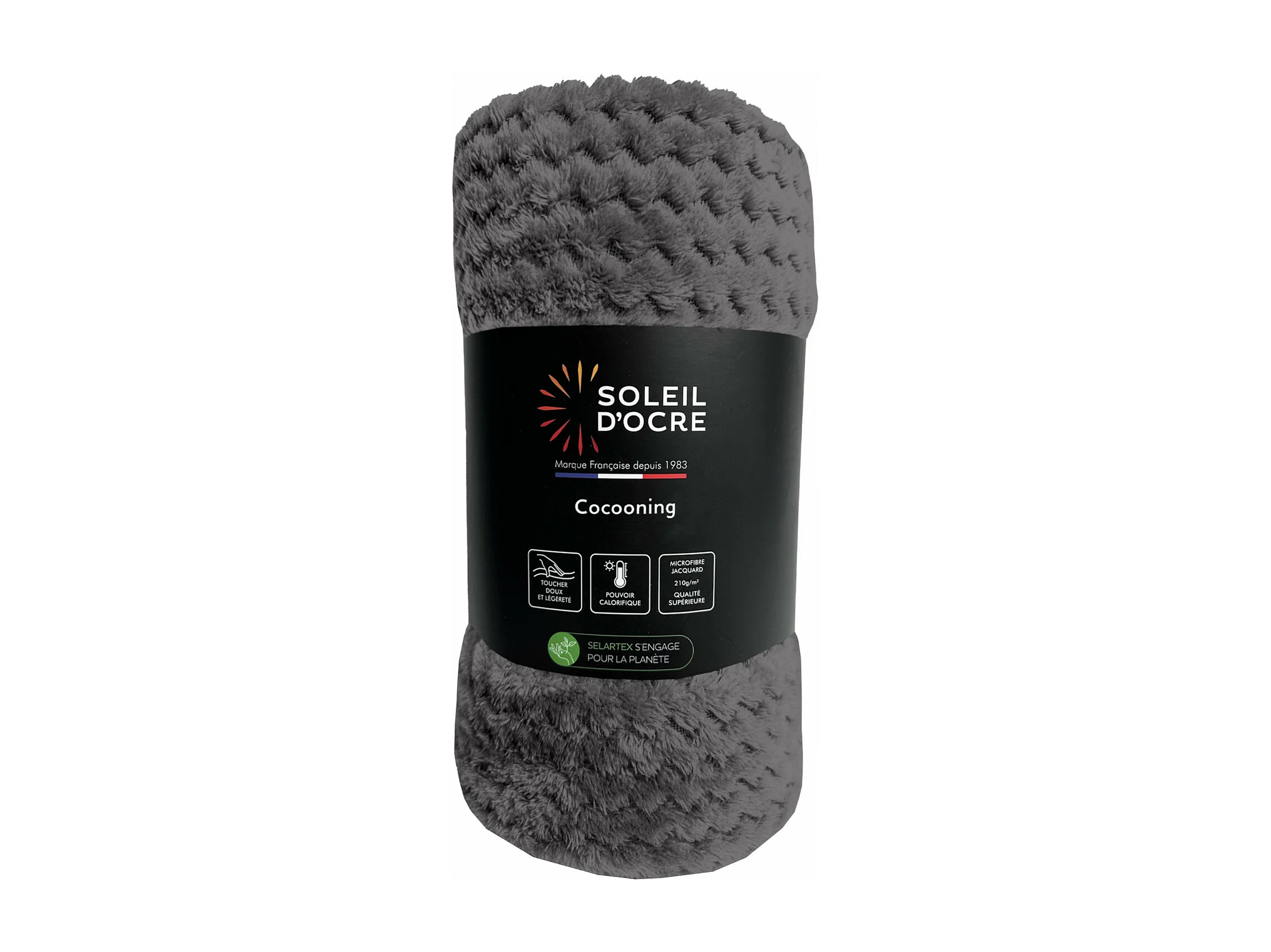 Couverture, plaid 180x220 cm COCOONING gris, par Soleil d'ocre