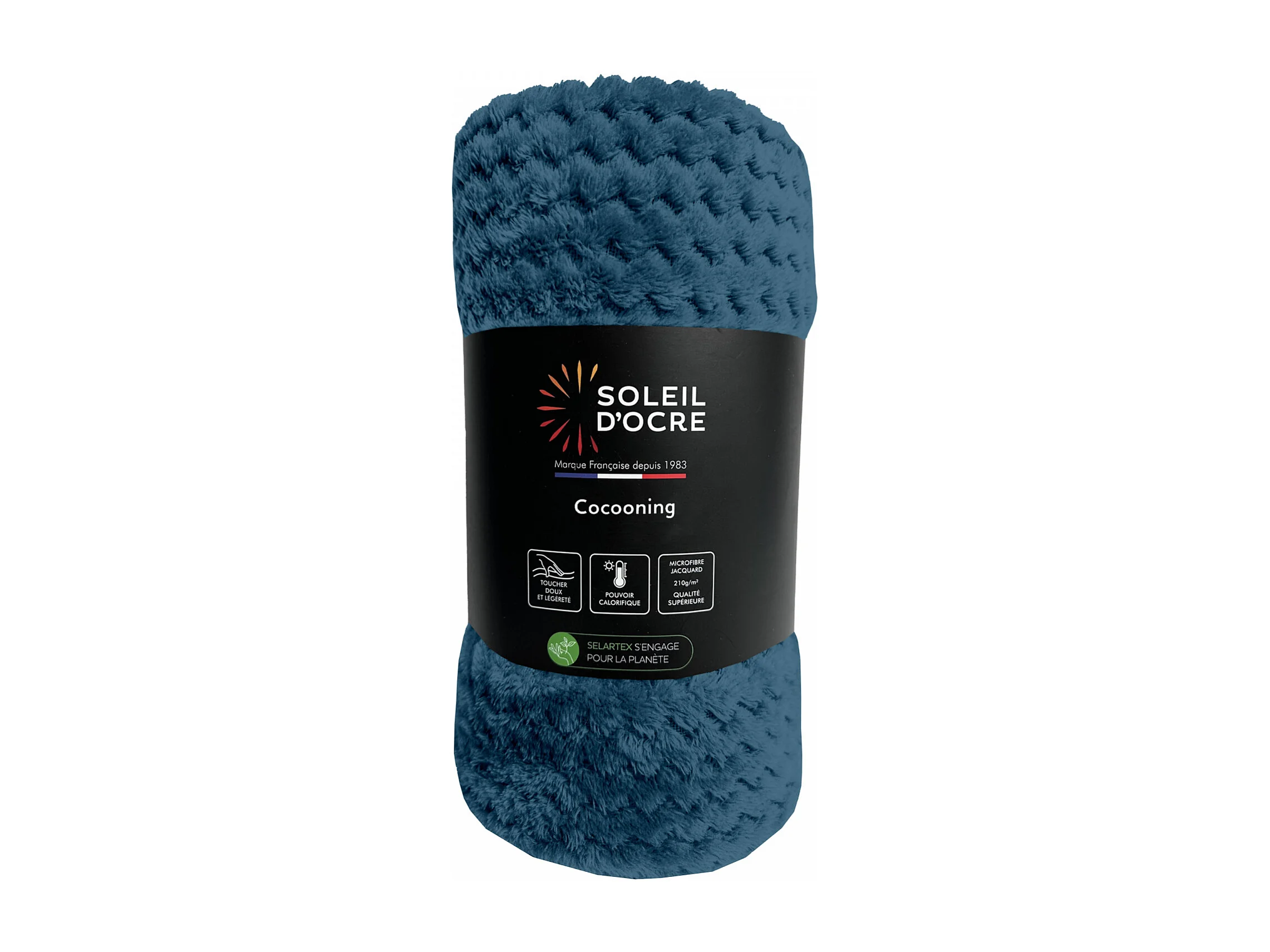 Couverture, plaid 220x240 cm COCOONING bleu canard, par Soleil d'ocre