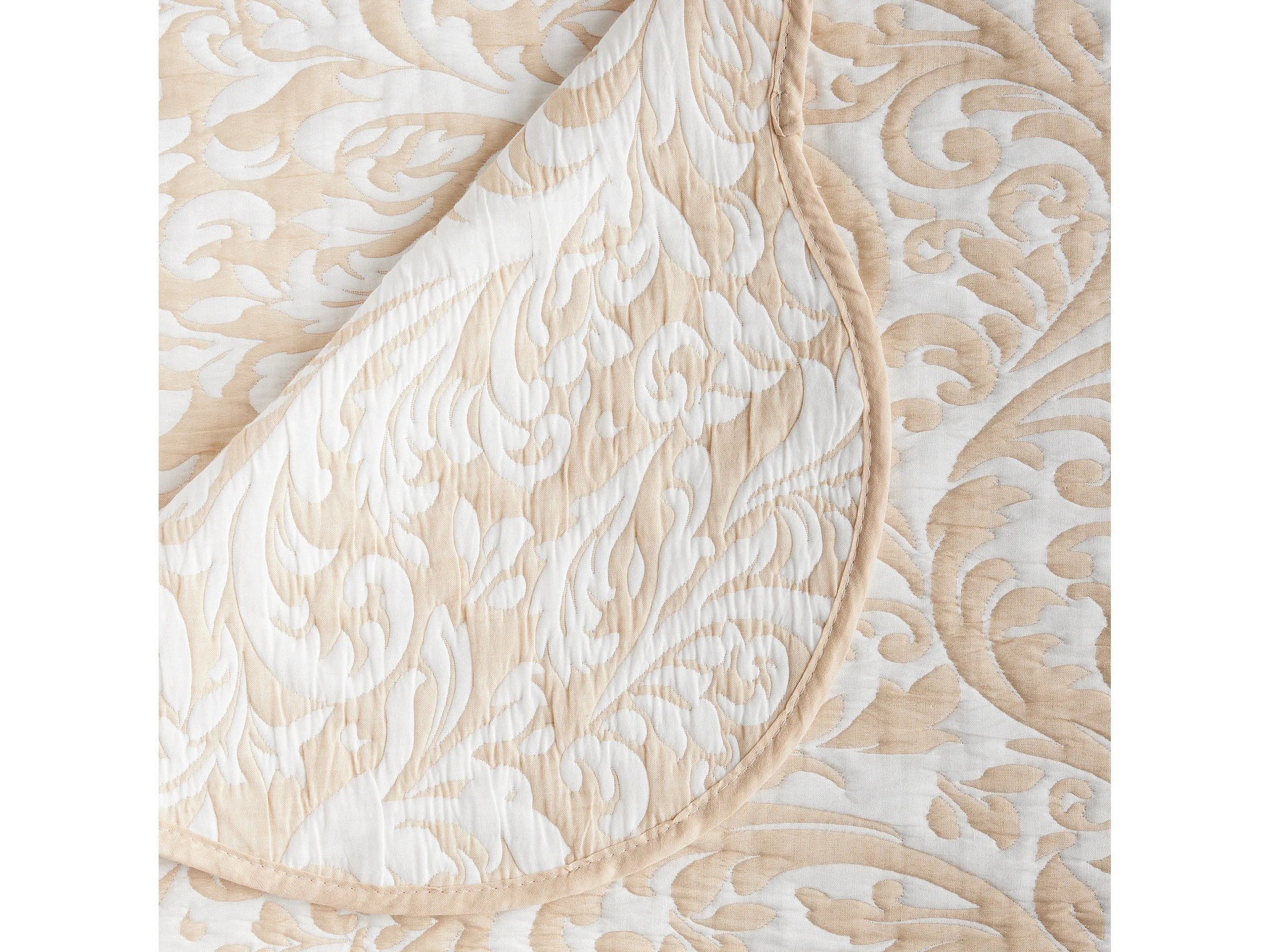 Dessus de lit Beige Lin motif Arabesque 240 x 260 avec 2 Taies