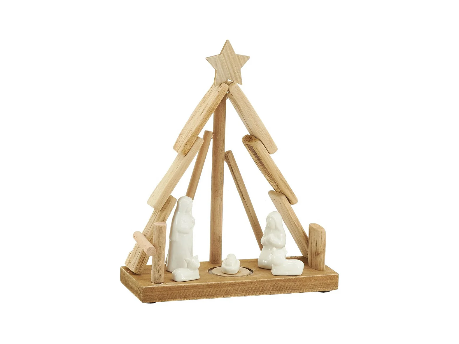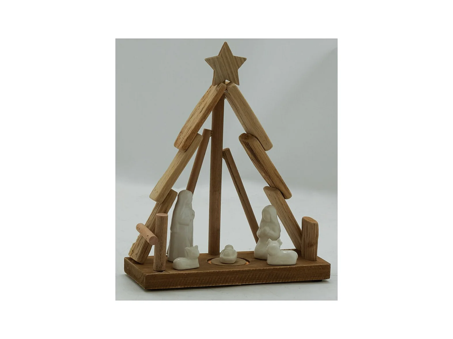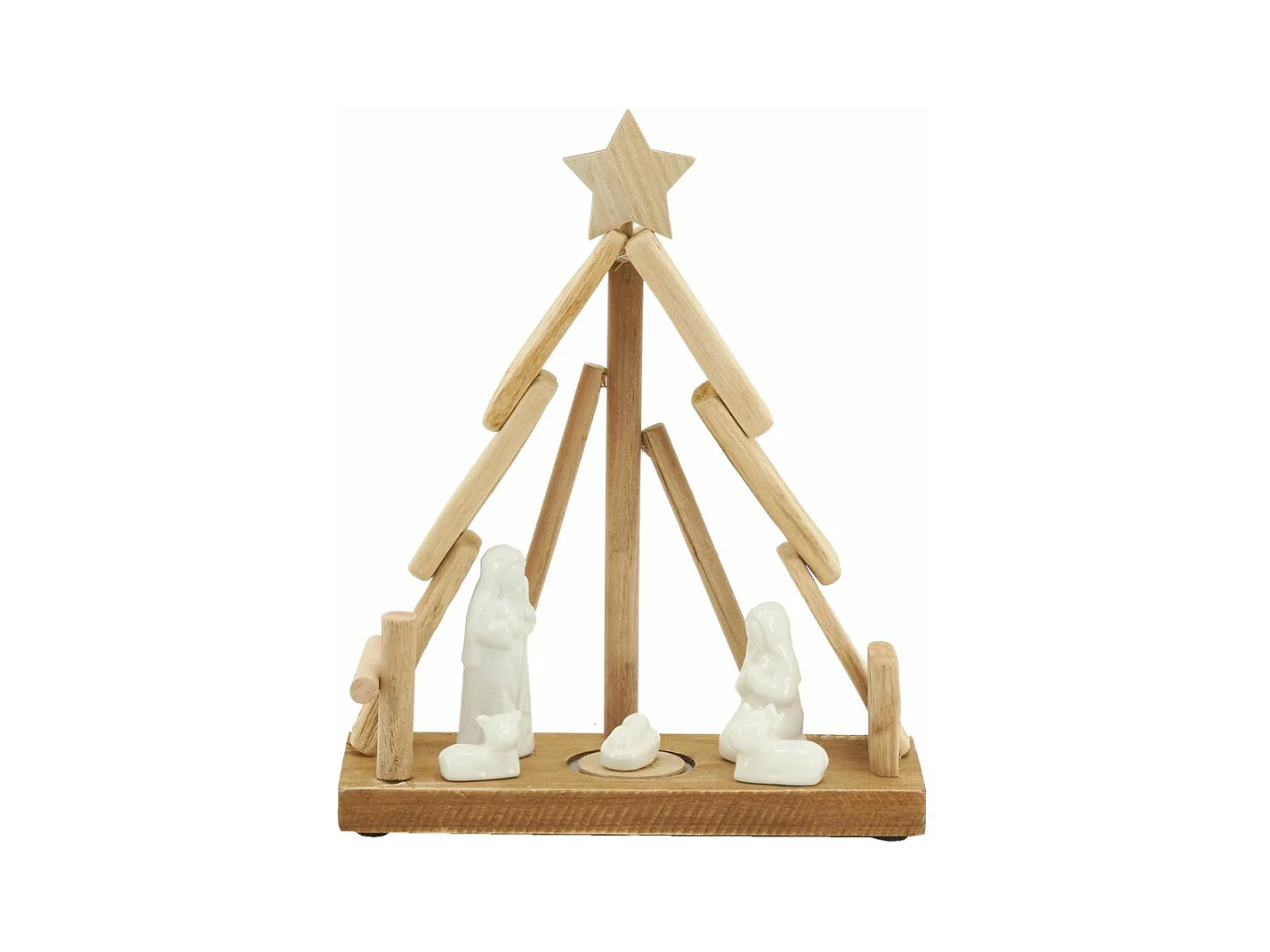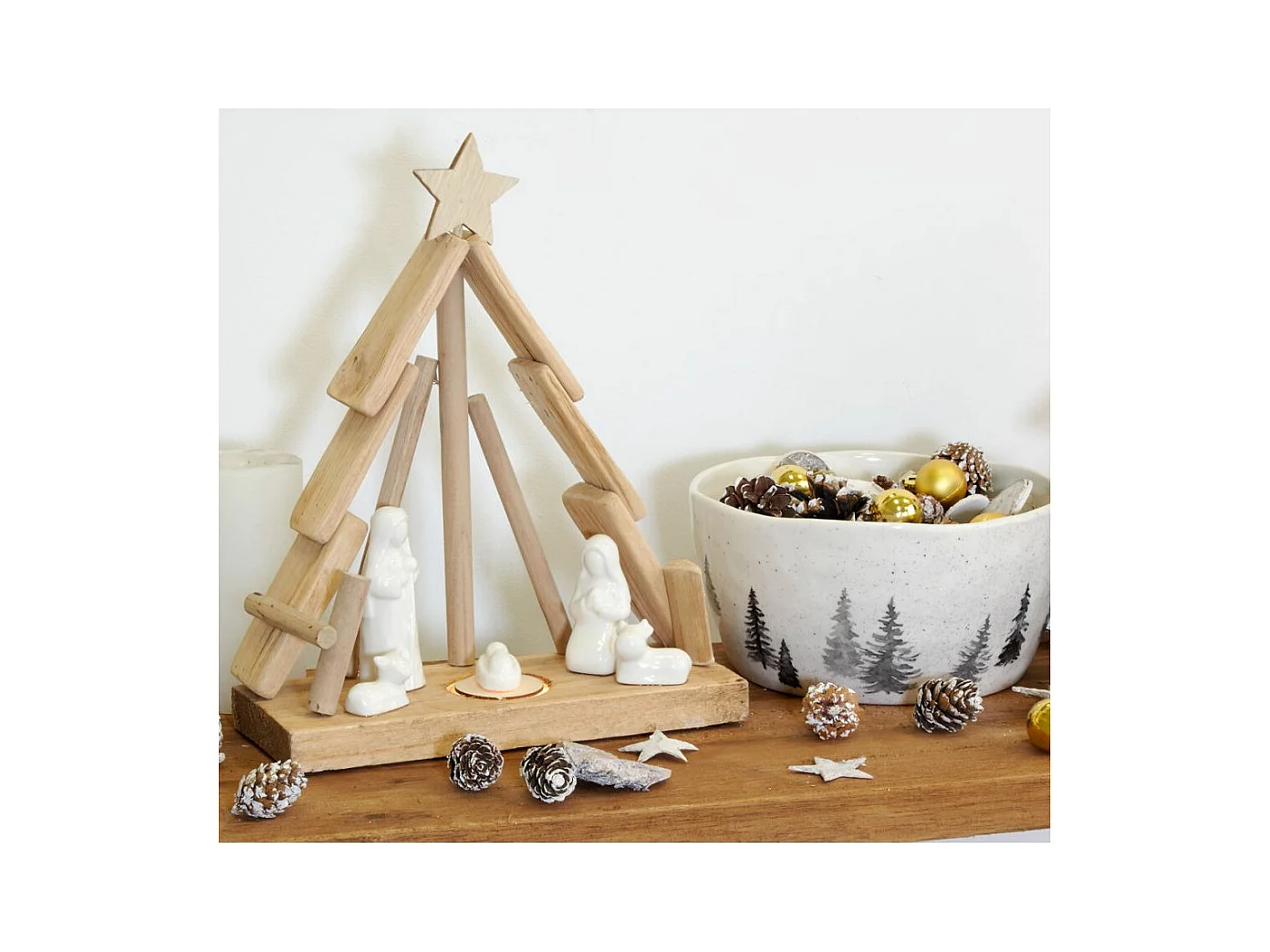 Sapin de Noël à Poser "Puzzle" 30cm Blanc & Naturel