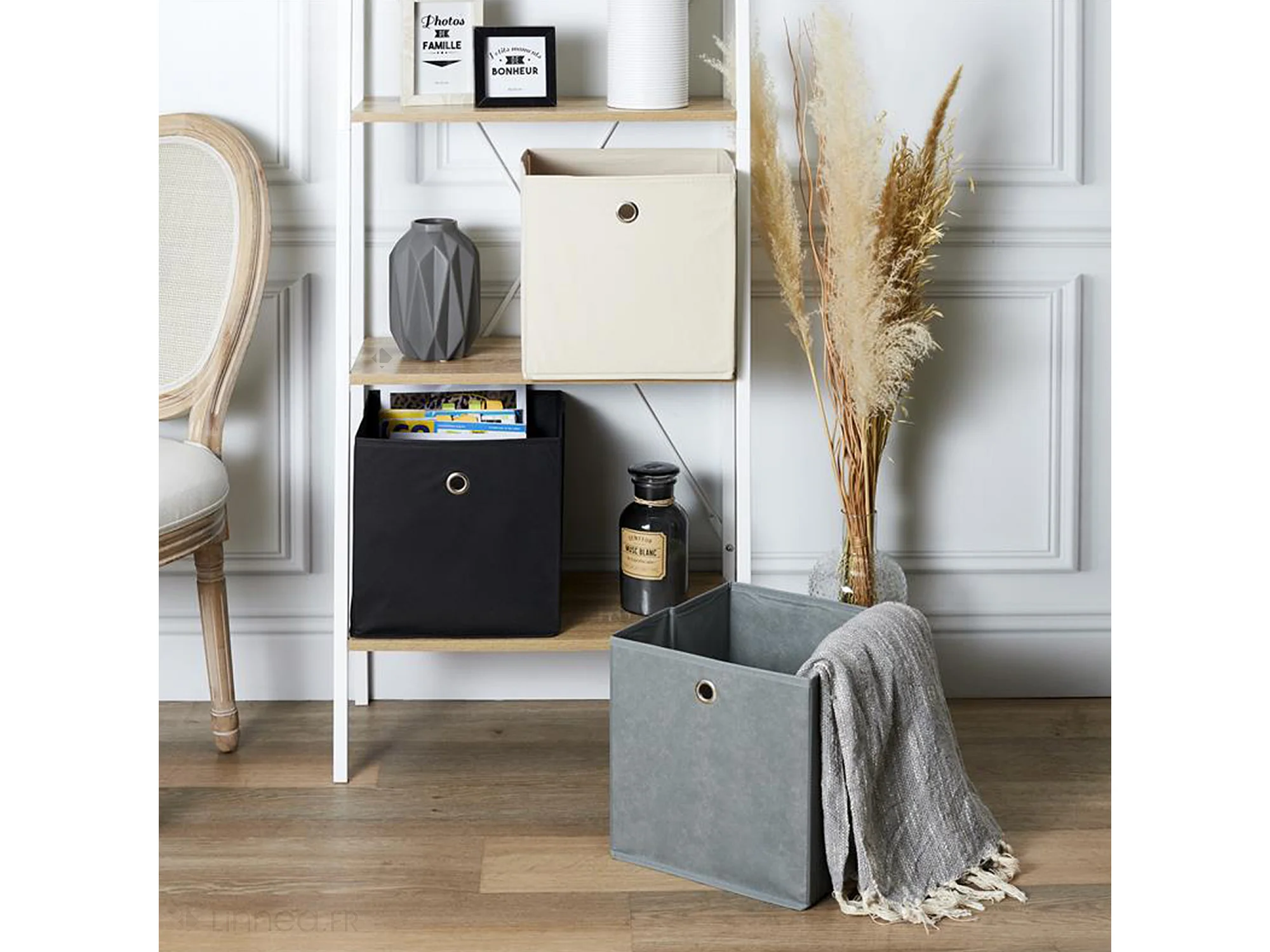 Cube de rangement 30x30x30 cm noir et anneau chromé