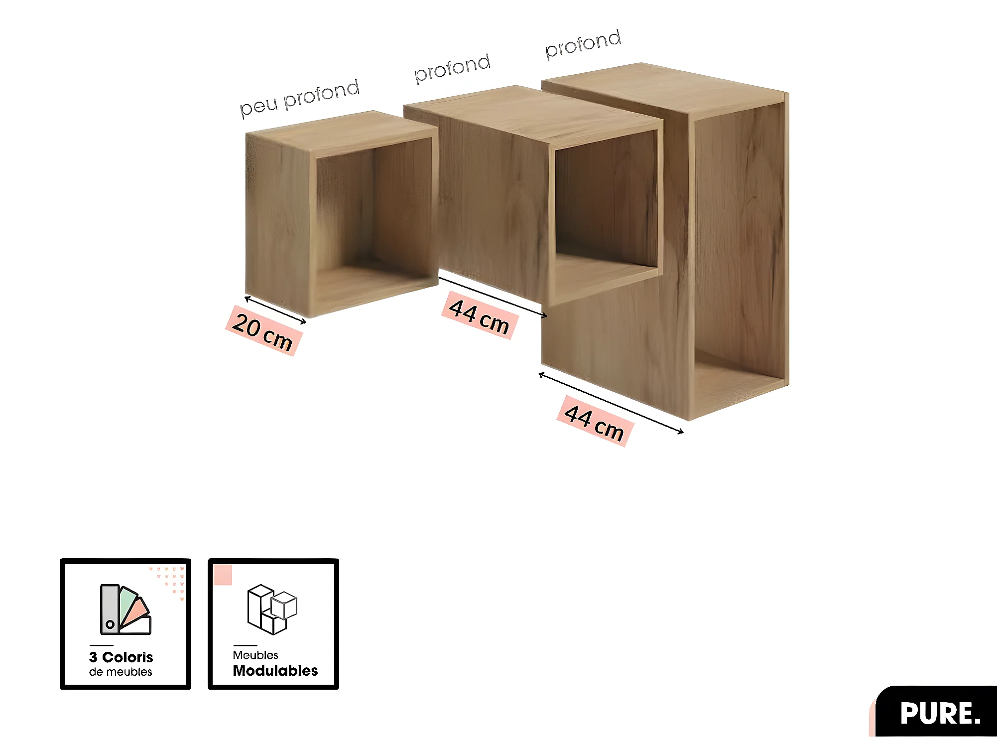 Cube murale modulable | PURE | Béton Noir | 60 × 30 × 44