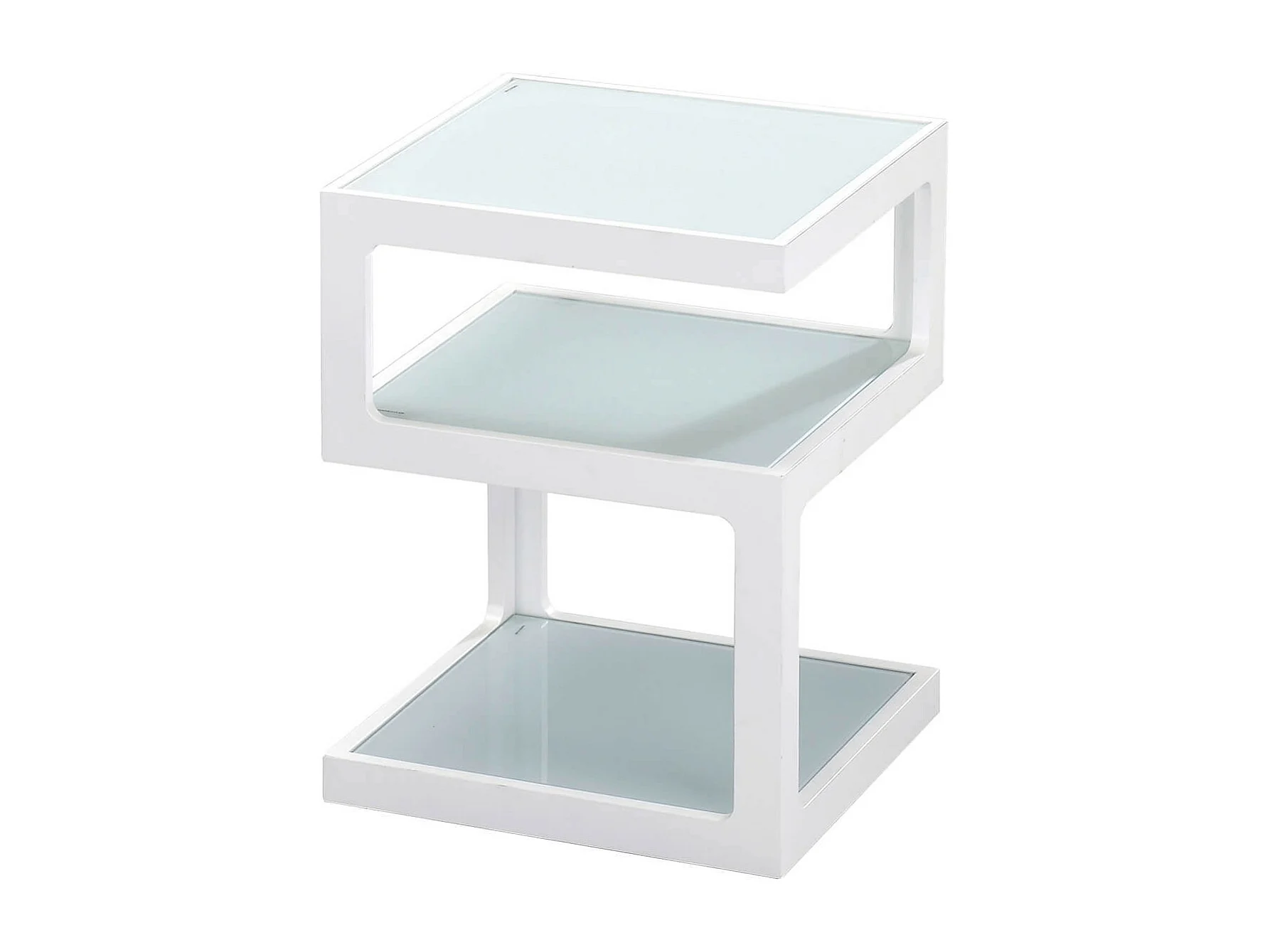 CUBIKA - Chevet Blanc 3 Niveaux Plateaux en Verre