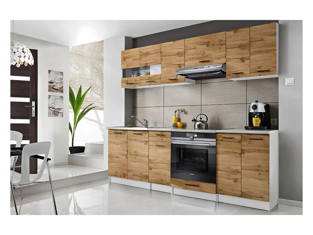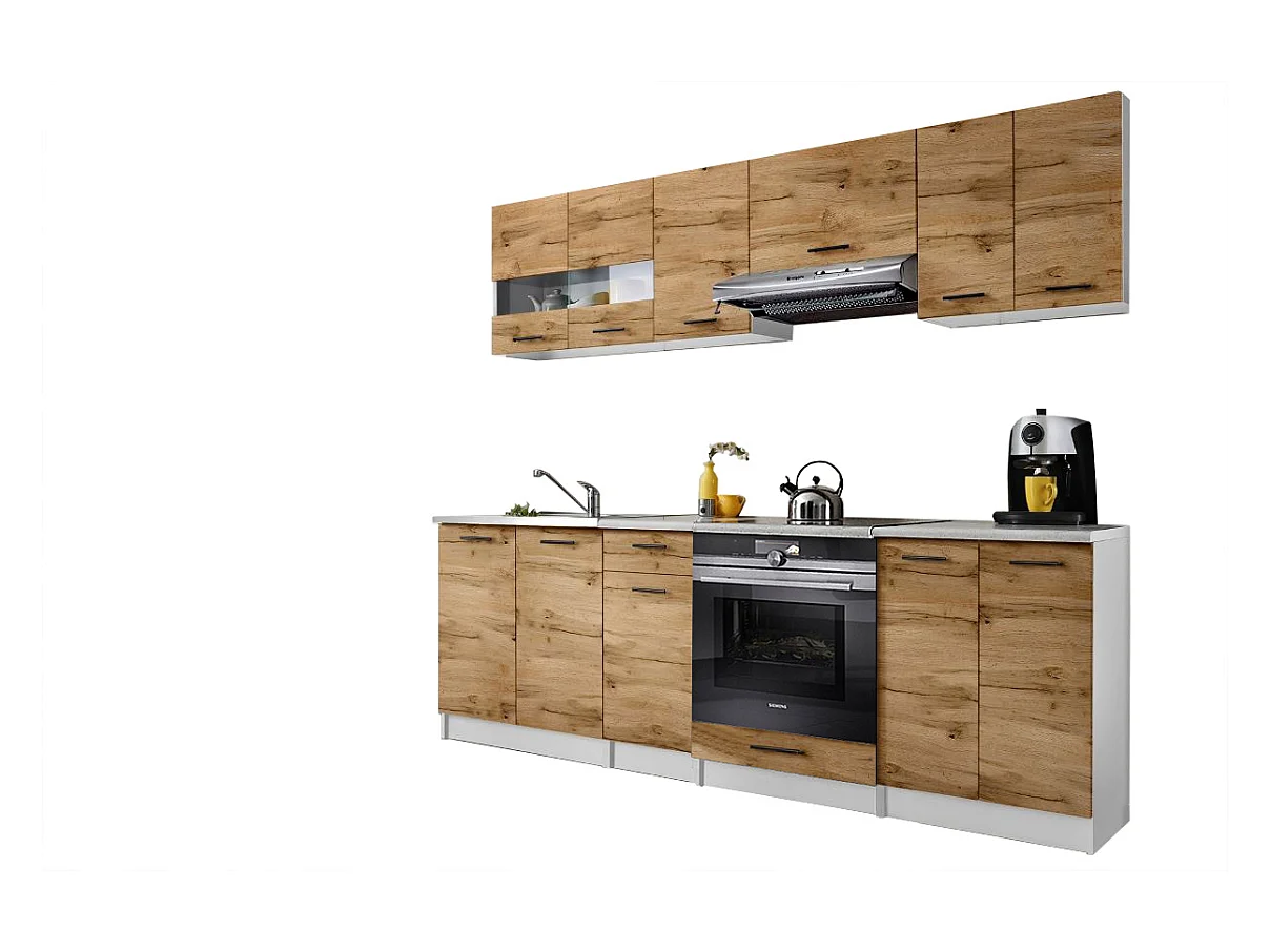 Cuisine Bigo 8 éléments - finition bas BOIS haut BOIS 240 cm