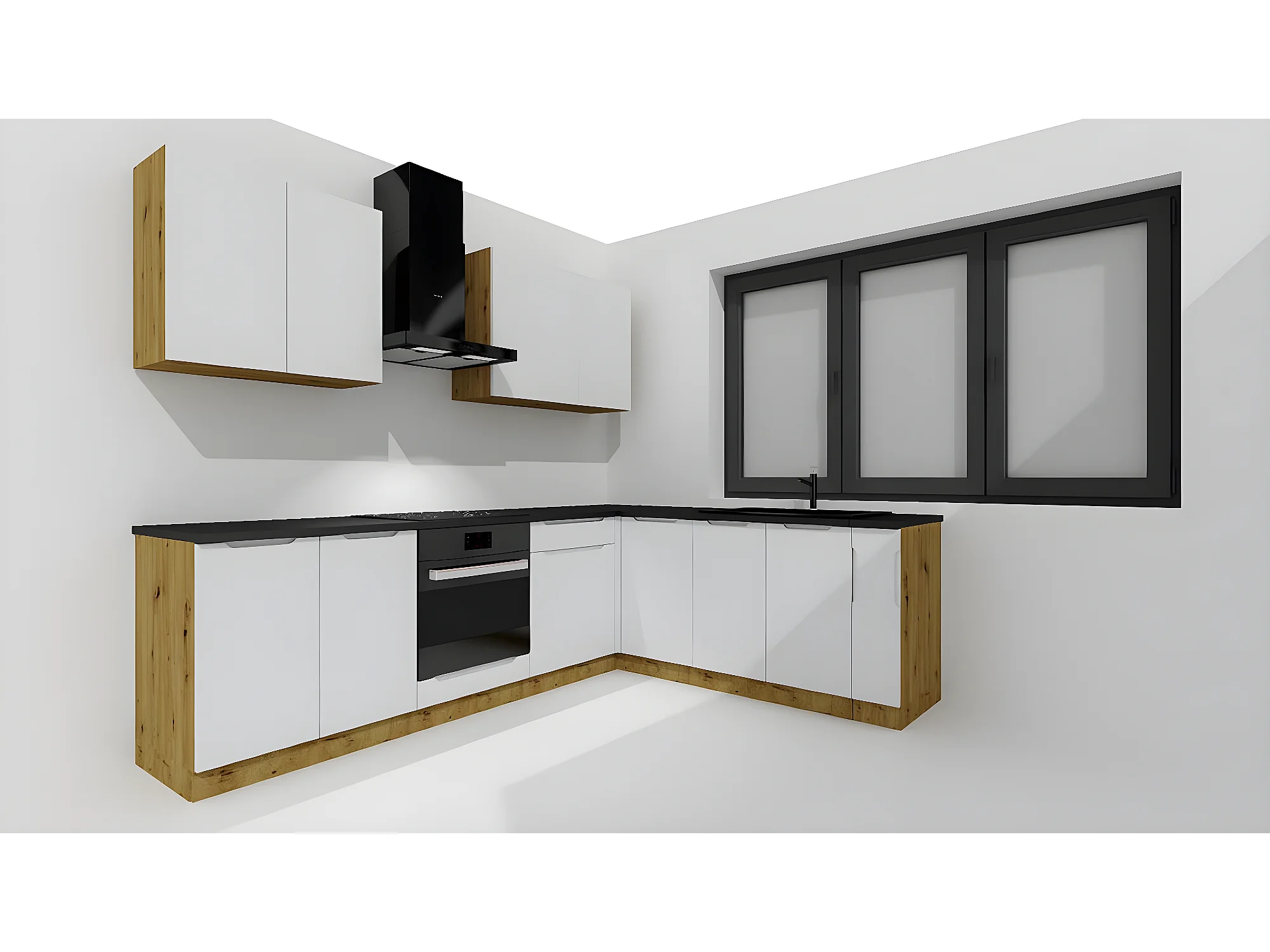 Cuisine complète d'angle ISYA 9 éléments couleur Gris clair/Artisan - Longueur 200/260 cm